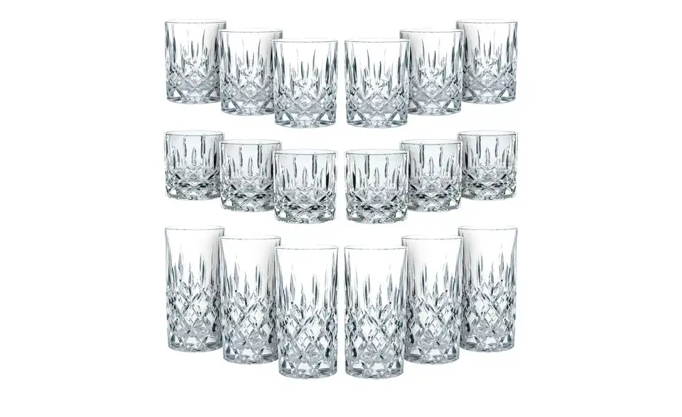 - Enthält 6 Whiskygläser á 245 ml, 6 Whiskytumbler á 295 ml und 6 Longdrinkgläser á 375 ml