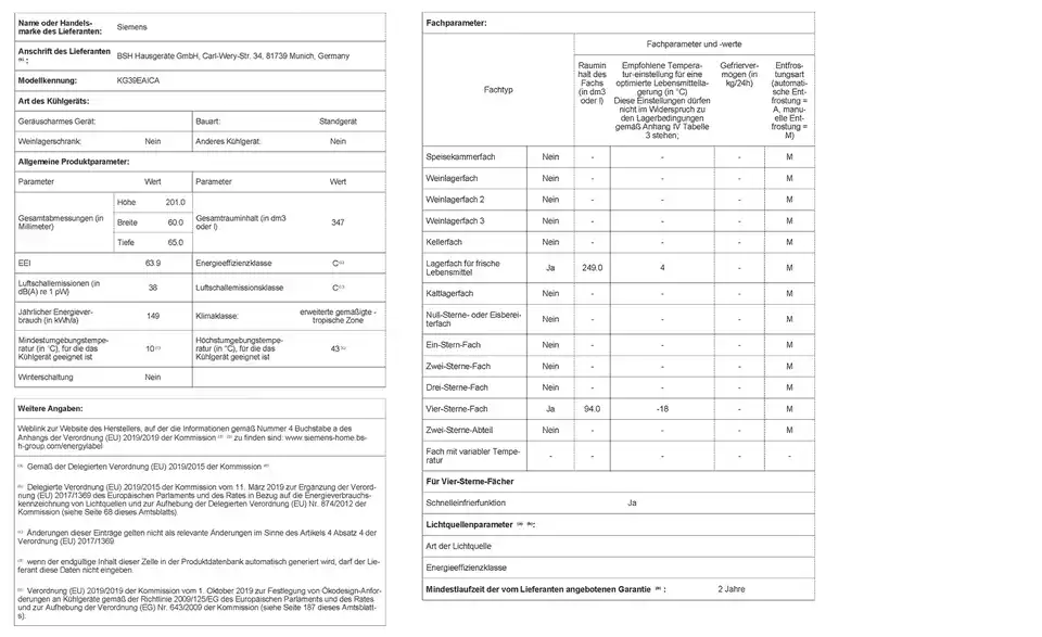 Das EU-Energielabel (EU-Energieverbrauchskennzeichnung) kennzeichnet die Energieeffizienz eines Artikels. Die Reglementierungen des Labels werden von der EU festgelegt und von nationalen Marktüberwachungsbehörden überprüft. Die Skala reicht von A bis G, wobei nur die Werte A, B und C von uns als nachhaltig betrachtet werden.