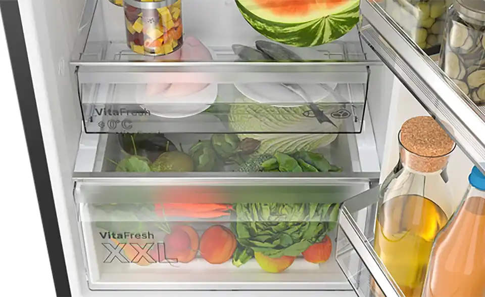- Mehr zu Ausstattung / FunktionLagerzeit bei Störung 15 StundeAbtauautomatik Gefrierteil No FrostAbtauautomatik KühlteilAnzahl Gefrierschubladen 3Anzahl Türen 2Anzahl Türfächer 4Anzahl verstellbarer Ablageböden 3Bedienelement Digitales TouchdisplayFlaschenregal vorhandenGefrierkapazität in 24 h 10 kgInnenbeleuchtung LEDKlimaklasse SN-TSterne Gefrierraum ****Elektronische SteuerungTemperatur regelbar GefrierteilTemperatur regelbar KühlteilAlarmfunktionGesamte Anzahl Ablageböden 5Gesamtnutzinhalt aller Frischhalte- und Kühlfächer 260 LiterGesamtnutzinhalt aller Gefrierfächer 103 Literoptisches und akustisches Warnsignal bei Temperaturanstiegoptischer und akustischer Türalarmsuper Gefrieren mit EingefrierautomatikVitaFresh Schublade