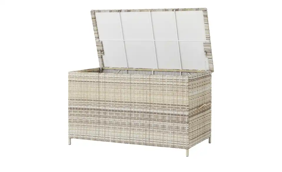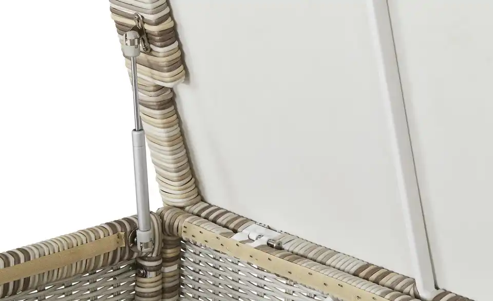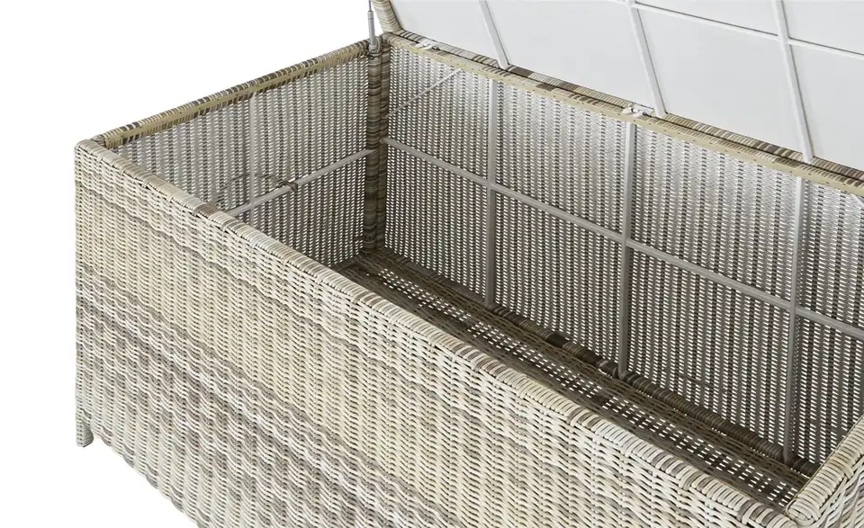 Wenn sie nicht gerade genutzt werden, müssen Auflagen und Kissen gut verstaut werden. Mit der Kissenbox Sylt geht das ganz wunderbar. Die Box ist richtig schön groß und bietet somit viel Stauraum. Sylt ist aus strapazierfähigem Polyrattan gefertigt. Damit die Kissen trocken bleiben, ist das Innere der Box mit einem Nässeschutz ausgestattet.Lieferung & Versand