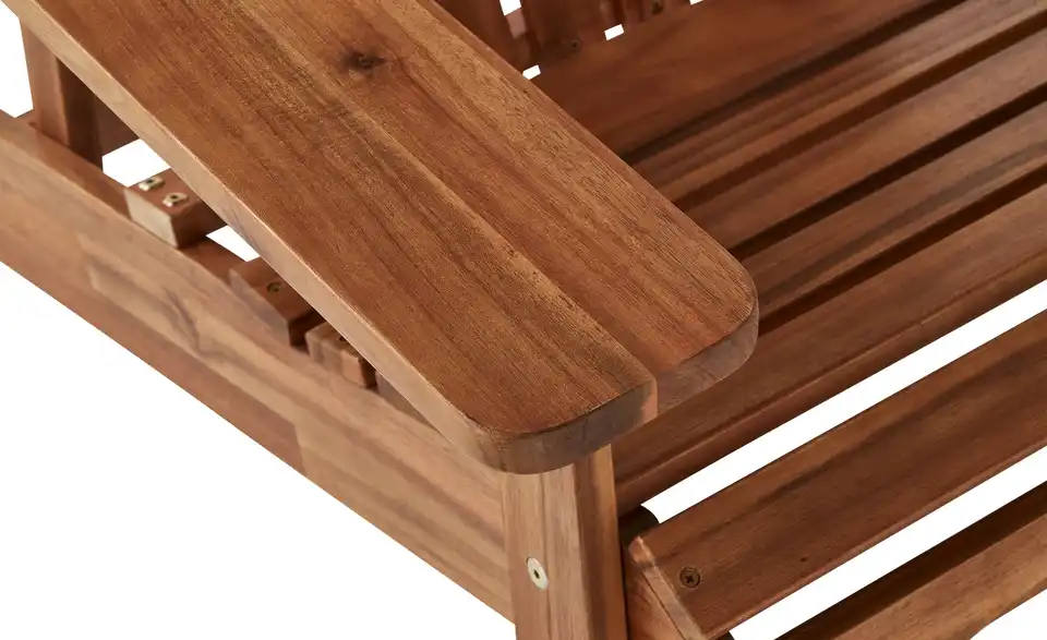 Der Sessel Kanada ist im Countryhouse-Style designt. Sitzfläche und Rückenlehne sind leicht schräg gestellt, sodass Sie sich bequem zurücklehnen können. Der gesamte Sessel ist aus Eukalyptusholz gefertigt. Es verfügt über eine schöne warme Farbe und eine feine Maserung. Übrigens: Der Sessel kann mit dem gleichnamigen Anstellhocker ergänzt werden.bewusst wohnen
