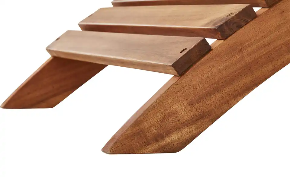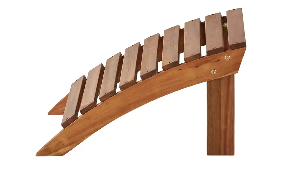 Der Anstellhocker Kanada ergänzt den gleichnamigen Sessel. Er wird einfach davor gestellt – und schon können Sie die Beine bequem ablegen. Dank der gebogenen Form geht das noch bequemer. Kanada ist auf massivem Eukalyptusholz gefertigt.bewusst wohnen