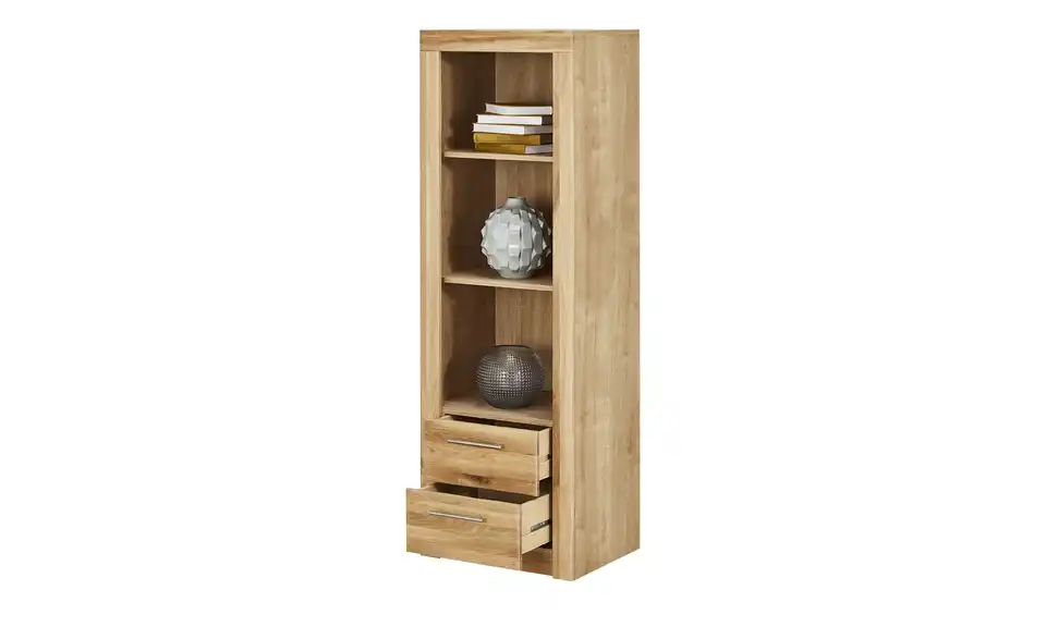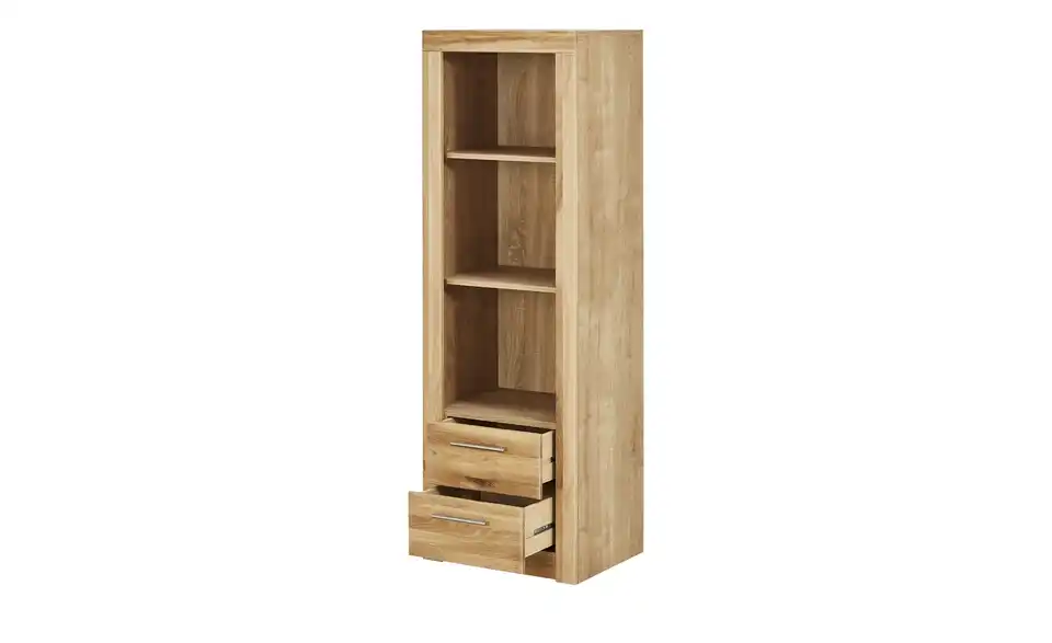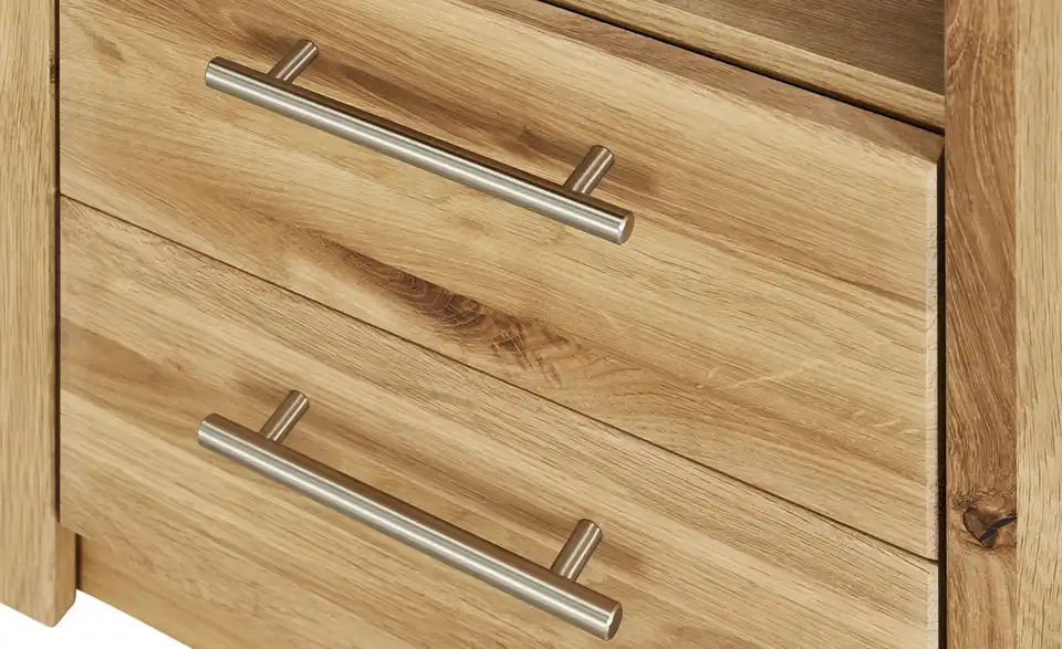 Bücher oder Spielsachen lassen sich wunderbar im Regal Oslo Classic unterbringen. Dafür hat es drei geräumige offene Fächer. Die Einlegeböden sind in der Höhe verstellbar. Direkt darunter stehen Ihnen zwei Schubkästen zur Verfügung. Die Front von Oslo besteht aus massiver Wildeiche. Der Korpus ist hochwertig foliert. Dank der Wildeichen-Nachbildung passt das Dekor farblich zu der Front.Lieferung & Versand