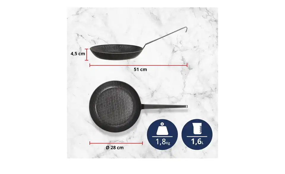 Eisenpfannen erfüllen schon seit Jahren ihren Dienst in der Küche. Wichtig für optimale Ergebnisse ist, dass die Pfanne gut eingebrannt wird und somit eine gute Patina entwickelt. Diese sorgt für den Antihafteffekt.Lieferung & Versand