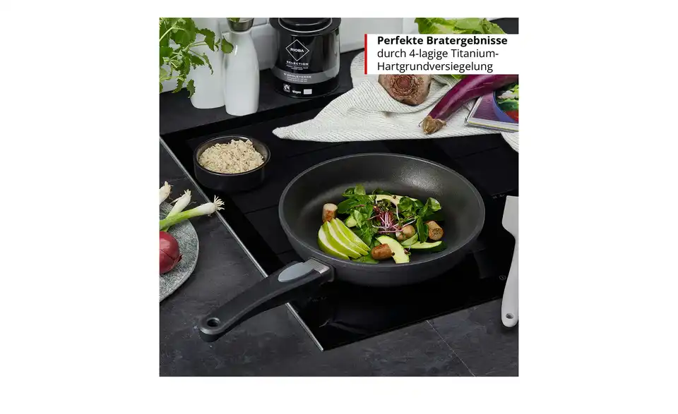 - Mehr zu MaterialAluminium-Handguss, Titanium-Antihaftversiegelungca. 10 mm starker Induktionsboden