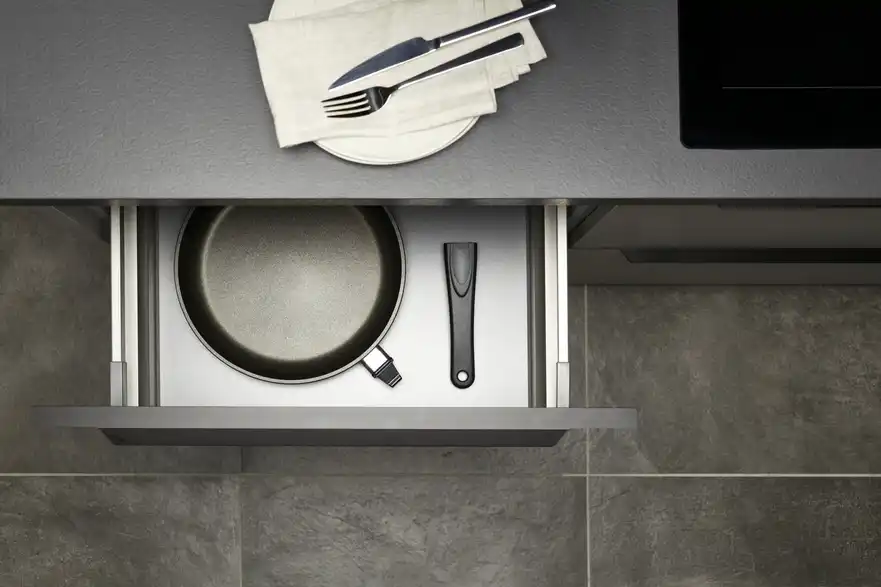 - abnehmbarer Griff per Knopfdruck - perfekt zum Warmhalten im Backofen