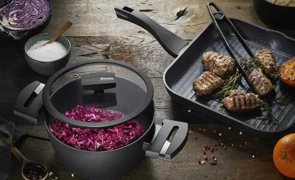 1921 gegründet, revolutionierte Berndes 1976 das Kochgeschirr: Die erste Pfanne mit Antihaftbeschichtung wurde entwickelt. Mittlerweile stellt das Unternehmen nicht nur Töpfe, Pfannen und Küchenzubehör her, sondern hat mit b.green eine nachhaltige Produktlinie herausgebracht, die aus 100% recycelten Aluminium-Dosen besteht.