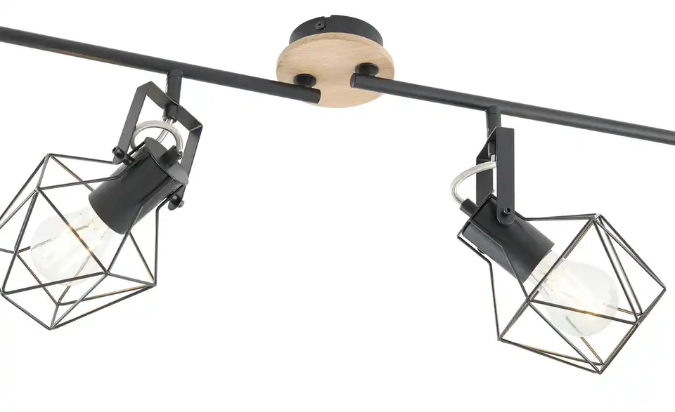Die Spots dieser Wand- und Deckenleuchte sind individuell dreh- und schwenkbar und sorgen so für eine optimale Ausleuchtung. Die Kombination aus Gummibaumholz und Metall lässt die Wandleuchte gleichzeitig rustikal und modern wirken und passt sich vielen Einrichtungsstile gekonnt an. Durch den schwarzen Metallkorb gibt sie ein schönes Lichtspiel wieder. Die Leuchte wird ohne Leuchtmittel geliefert, sodass Sie die Wand- und Deckenleuchte mit E27-Leuchtmitteln Ihrer Wahl ausstatten können. Unser Tipp: Einen besonderen Vintage-Charme verleihen Sie der Lichtquelle mit LED-Filament-Leuchtmitteln.Lieferung & Versand