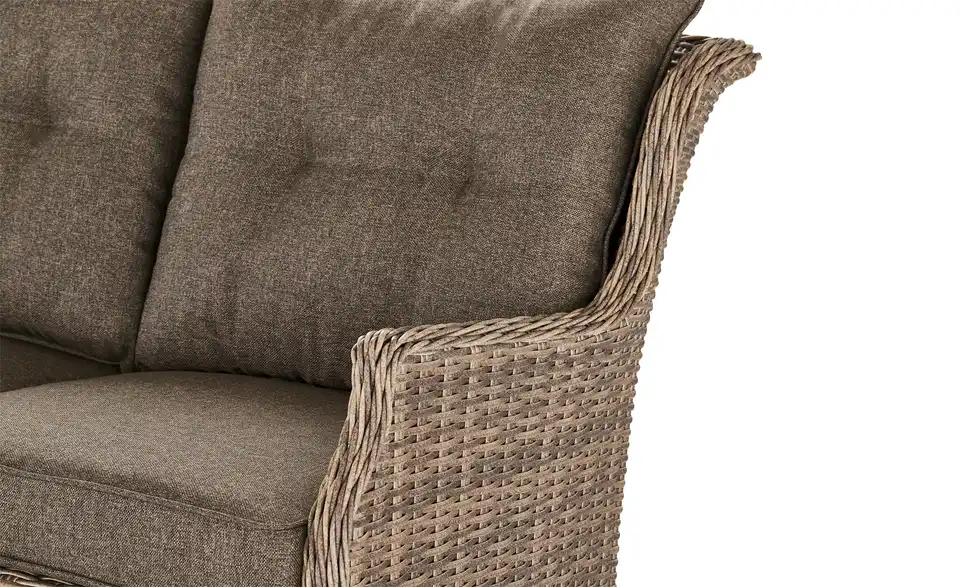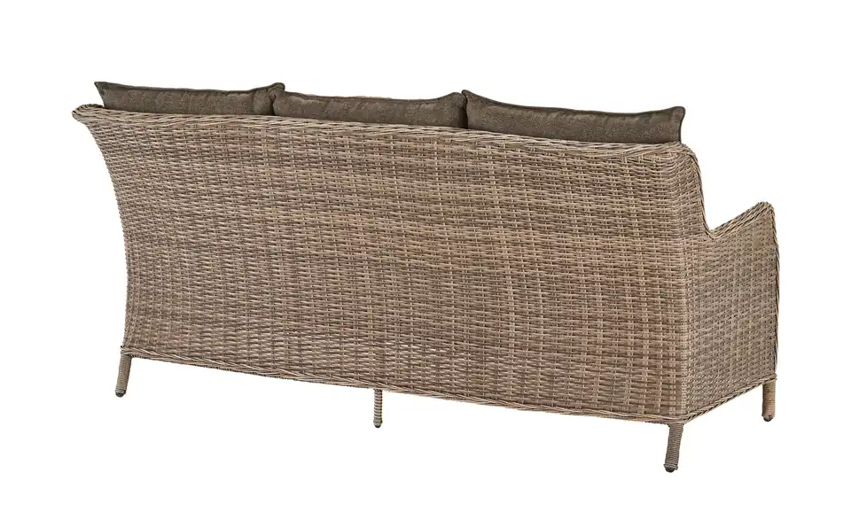 Ob als Ergänzung zur gleichnamigen Serie oder zu bereits vorhandener Gartengarnitur: Dieser Dreisitzer von a casa mia besitzt alles, was ein Gartenmöbel mitbringen muss. Das Sofagestell besteht aus unempfindlichem, pulverbeschichtetem Aluminium, das mit einem wetterbeständigem, champagnerfarbenem Kunststoffgeflecht ummantelt wurde. Durch letzteres wirkt das Sofa natürlich und freundlich. Die mitgelieferten Sitzkissen bestehen aus pflegeleichtem, strapazierfähigem Polyester und sorgen für den nötigen Sitzkomfort.Lieferung & Versand