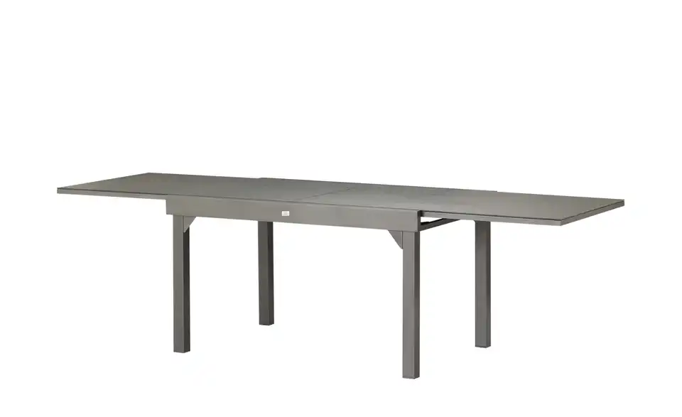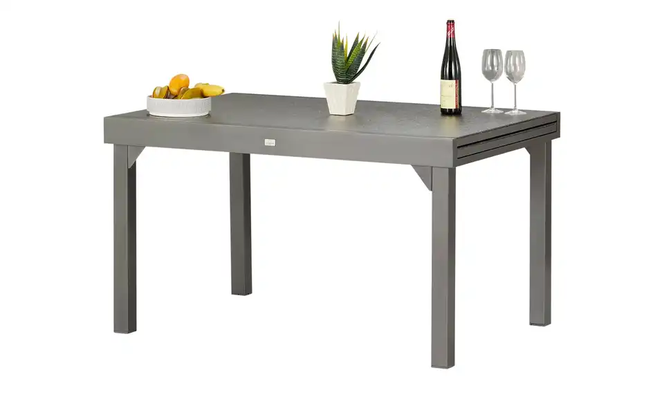 Wetterbeständiges, pulverbeschichtetes Aluminium macht diesen Ausziehtisch perfekt für den Garten und die Terrasse. Auch die 135 x 90 Zentimeter große Tischplatte ist mit ihrer Sprühsteinbeschichtung für den Außenbereich geeignet. An dem grauen Tisch finden sechs Personen bequem Platz. Erwarten Sie mal mehr Besuch, können Sie den Tisch auf ganze 270 Zentimeter Länge erweitern. Dank der zeitlosen Farbgebung und dem kombinationsfreudigen Design passt der Ausziehtisch nicht nur zu den gleichnamigen Stühlen und Sesseln sondern auch zu vorhandener Gartenbestuhlung.Lieferung & Versand