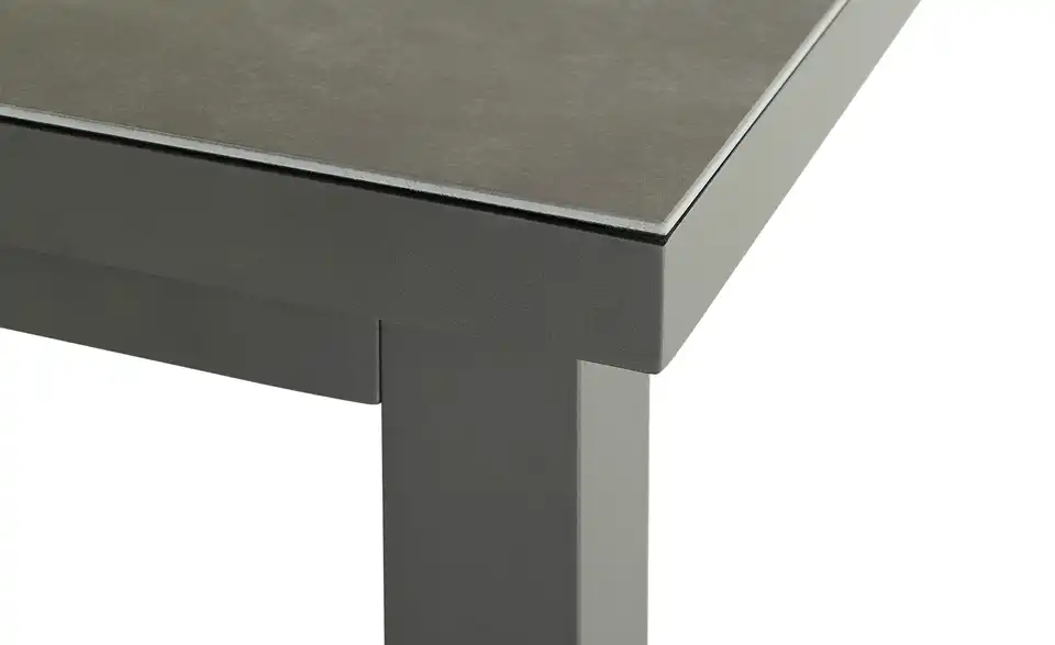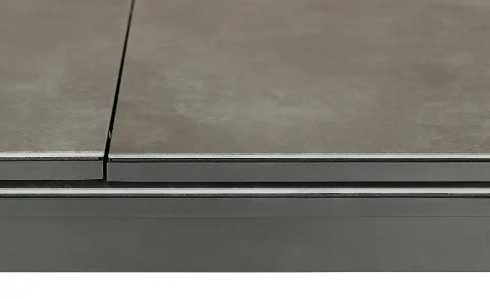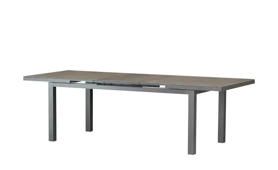 An diesem Outdoor-Ausziehtisch finden alle Ihre Gäste Platz. An seiner 100 x 200 großen Tischplatte ist hier problemlos Platz für 8 Personen. Dank seines leichtgängigen Auszugs ist der Gartentisch im Handumdrehen auf 260 Zentimeter erweitert, sodass weitere Gäste am Tisch sitzen können. Der Ausziehtisch besteht aus einem eisengrauen Gestell aus pulverbeschichtetem Aluminium und zeigt sich wetterbeständig. Die Tischplatte in grauer Keramik-Optik besitzt eine Oberfläche aus Sicherheitsglas. Dadurch können Sie Flecken mühelos abwischen.Lieferung & Versand