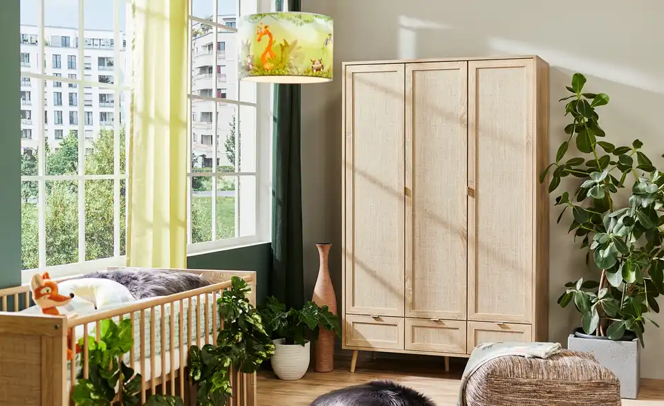 Die Serie Rafia erinnert an den beliebten Boho-Stil und wirkt hell und freundlich. Das gleichnamige Kinderbett greift die markanten Stil-Elemente gekonnt auf und bringt die attraktive Bastgeflecht-Optik jetzt auch ins Kinderzimmer. Kopf- und Fußteil sind beidseitig mit der 3D-Folie versehen und werden garantiert zum Eyecatcher. Unser Tipp: Kombinieren Sie das Kinderbett mit weiteren Möbeln der Serie Rafia, um ein helles und freundliches Kinderzimmer zu erschaffen.Lieferung & Versand