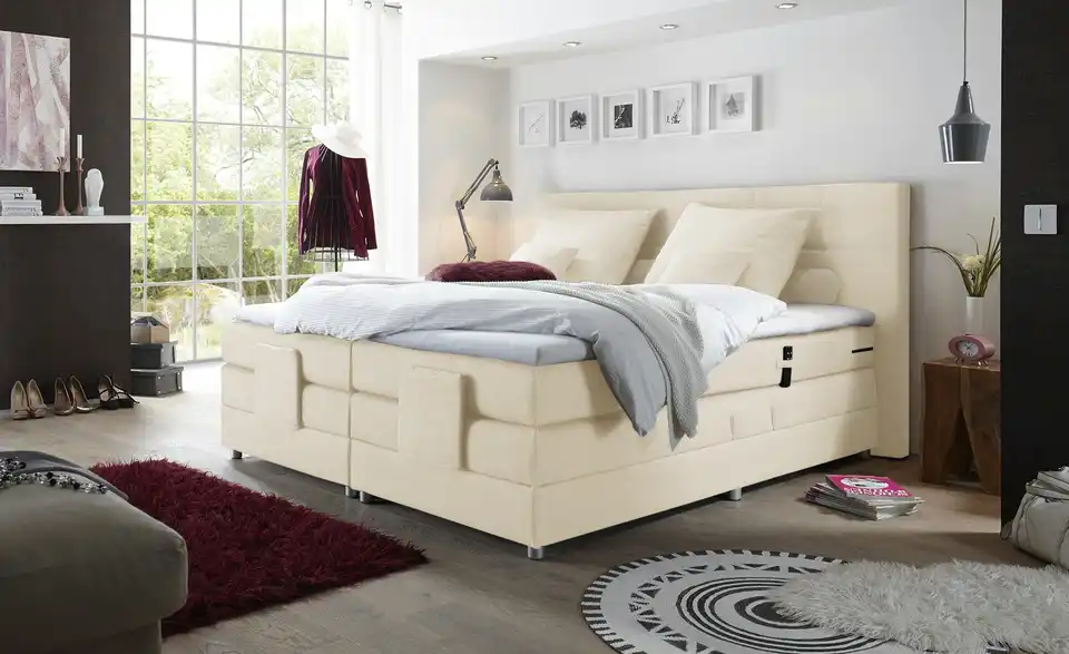 - Mehr zu Ausstattung / FunktionKopf- und Fußteil mit Kabelfernbedienung motorisch verstellbar7 Liegezonen500 Federn je 100x200 cm2 Boxen, 2 Matratzen und 2 TopperTopperbezug abnehmbar & waschbar bis 40 Grad