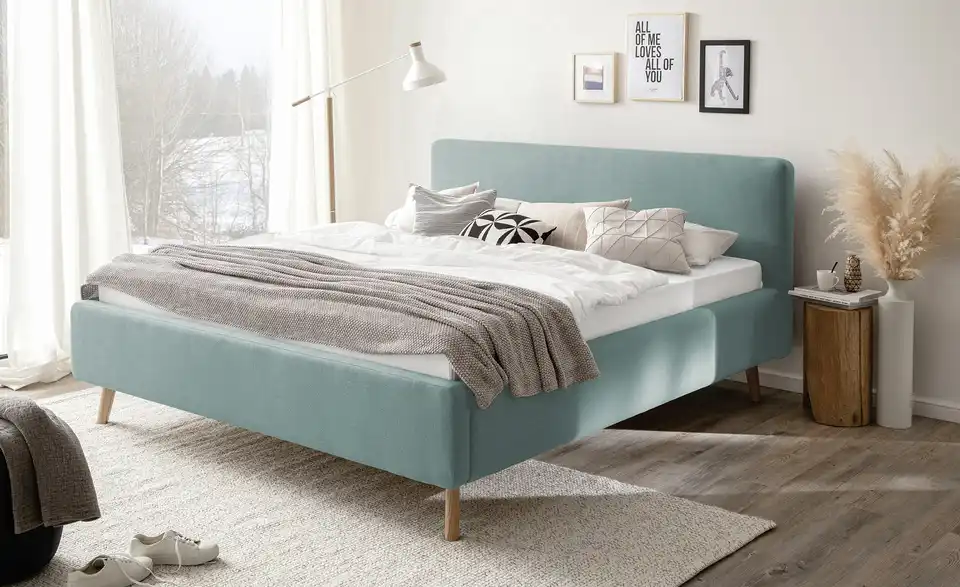 Skandinavisches Design ist bekannt für seine natürliche, schlichte Eleganz und Gemütlichkeit. Das Polsterbettgestell Mattis greift den Skandi-Look gekonnt auf. Die dunklen Massivholzfüße sorgen für eine attraktive Retronote. Bettgestell und Kopfteil sind weich gepolstert und bezogen. Der pflegeleichte Bezug ist dezent meliert und harmoniert auch mit bereits vorhandenen Schlafzimmermöbeln. Sie können das Polsterbettgestell Mattis mit Matratzen und Lattenrosten nach Wahl ergänzen. Diese sind in verschiedenen Größen und Abmessungen separat im Onlineshop erhältlich.Lieferung & Versand