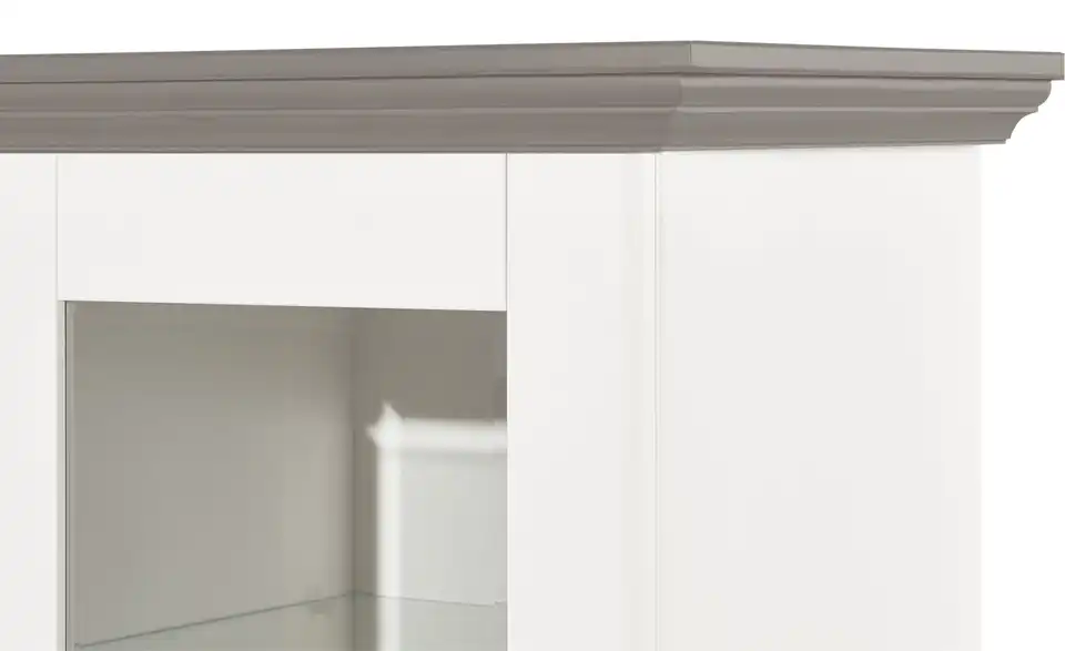 - Mehr zu FarbeHerstellerfarbe Front und Korpus Weiß gebeizt und lackiertHerstellerfarbe Kranz Grau gebeizt und lackiert