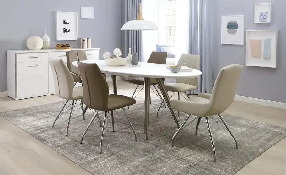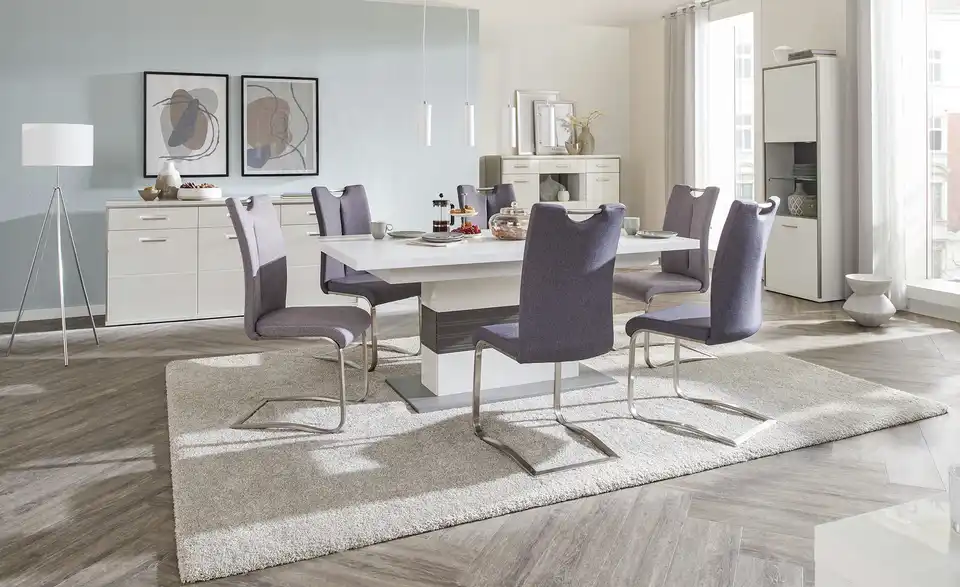 Lassen Sie Ihr Wohn- oder Speisezimmer durch das Sideboard Setto erstrahlen. Durch das stilvolle Weiß mit den Akzenten aus gebürstetem Metall und die Hochglanzfronten, wirkt Setto nicht nur modern und edel, sondern passt auch wunderbar zu den anderen Möbeln der gleichnamigen Serie. Aber auch alleinstehend oder in Kombination mit anderen Einrichtungsstilen macht die Kommode eine gute Figur. Hinter drei Schüben und drei Türen verbirgt sich viel Stauraum für Ihr Geschirr oder andere Dinge.Lieferung & Versand