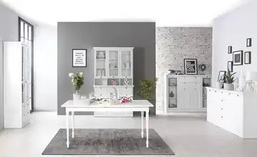 Im Highboard Laurito können Sie Lieblingsstücke präsentieren. Das geht in den je drei seitlichen Vitrinenfächern. Die Türen vor den Fächern sind mit Klarglas abgesetzt, was einen freien Blick in die Fächer erlaubt. Weitere Staumöglichkeiten befinden sich in den beiden Schubladen und hinter den beiden mittigen Türen. Das Material macht Oberflächen unempfindlich. Staub lässt sich ganz leicht wegwischen. Laurito ist im Landhausstil designt und passt zu den anderen Modellen der Serie.Lieferung & Versand