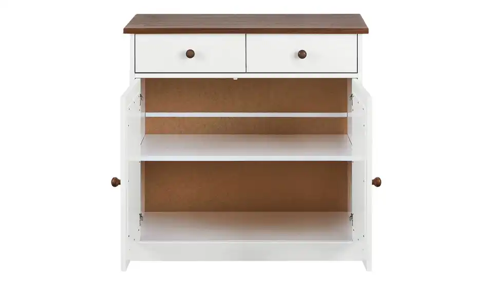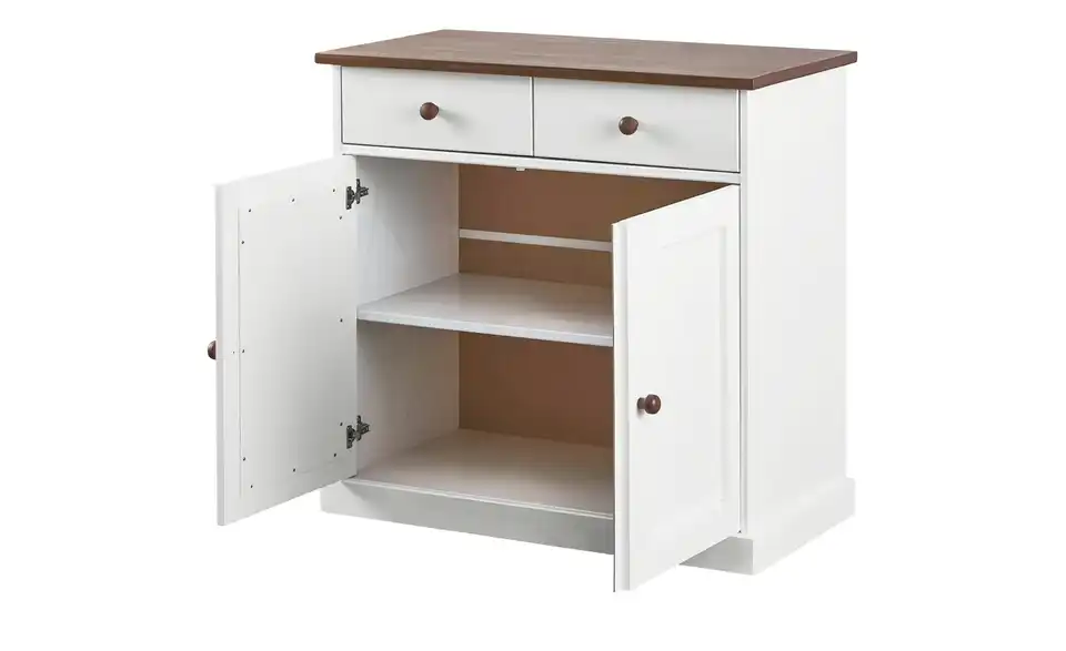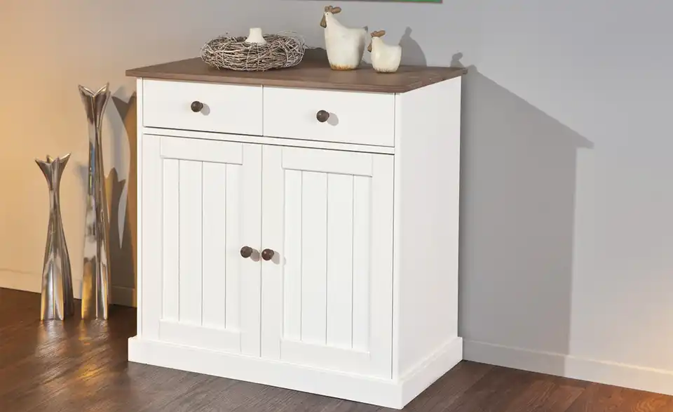 Der Landhausstil schafft ein wohnliches Flair. So auch die Kommode Muslone, die im Landhauslook designt ist. Muslone ist komplett aus massiver Kiefer gefertigt. Sie macht die Kommode besonders langlebig und stabil. Die Kommode verfügt über zwei Schubkästen und zwei Türen.Lieferung & Versand
