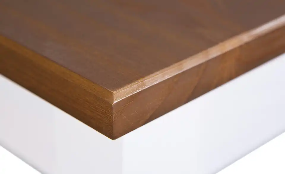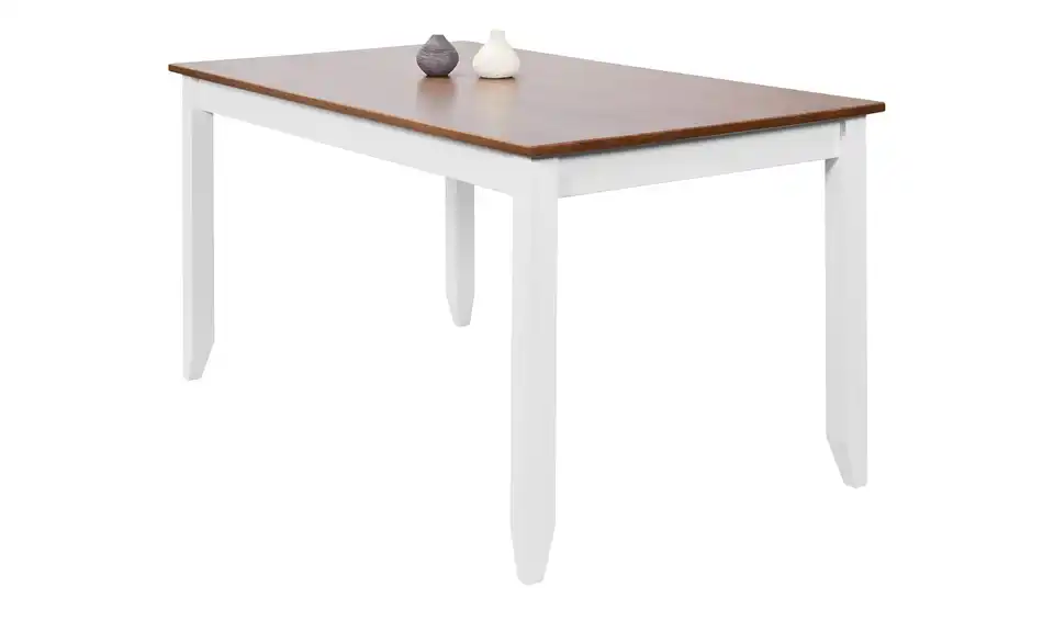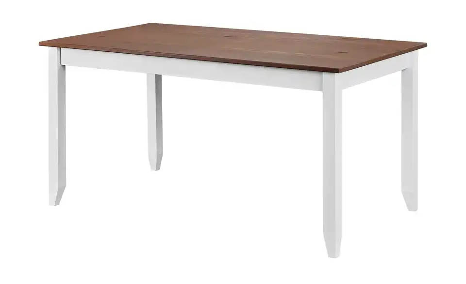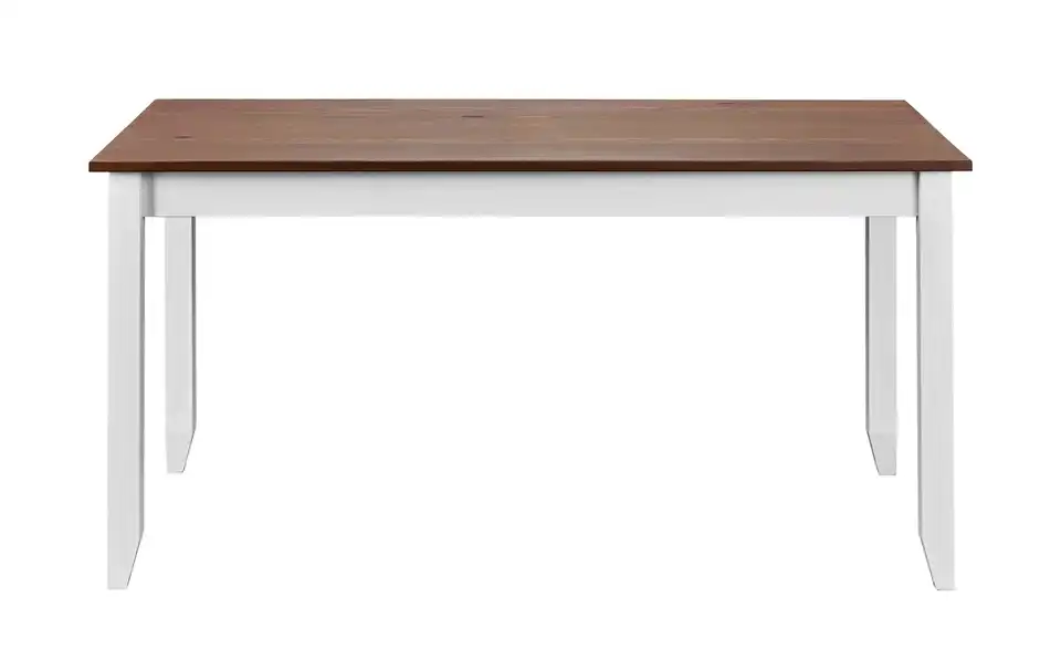 Für mindestens sechs Personen kann der Esstisch Muslone eingedeckt werden. Die rechteckige Tischplatte hat eine Größe von 160 x 90 Zentimetern. Sie ist aus massiver Kiefer und braun lackiert. Kontrastreich: das weiß oder grau lackierte Gestell. Es ist ebenfalls aus Kiefermassivholz und dekorativ gearbeitet.Lieferung & Versand