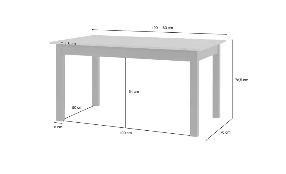 - Mehr zu MaßenBreite der Tischbeine 6 cmBreite zwischen Tischbeinen 50 cmLänge zwischen Tischbeinen 100 cm