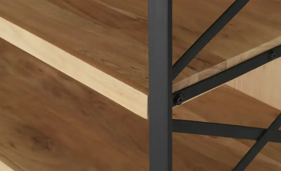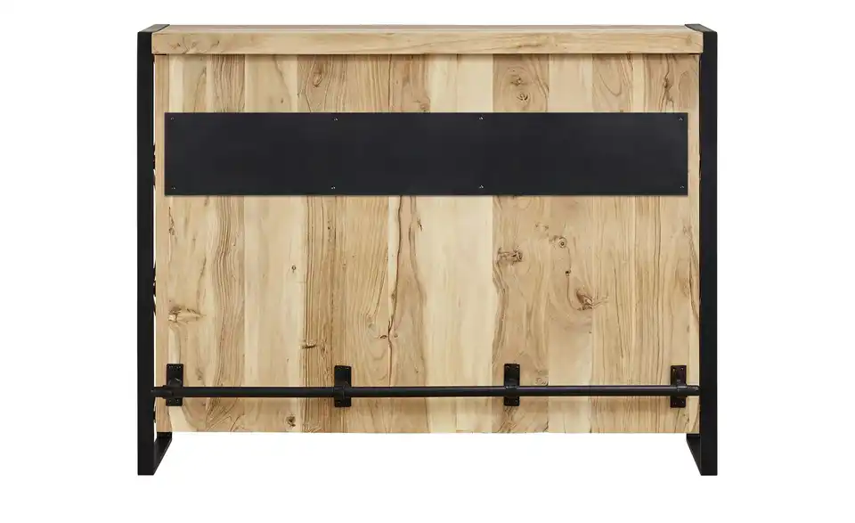 - Mehr zu MaterialAblageplatten, Tischplatte und Front Akazie natur massiv, gebeizt und lackiertAblageplatte MassivholzFußstange und Zierblende Metall, lackiert