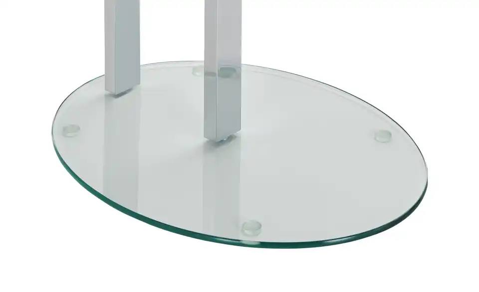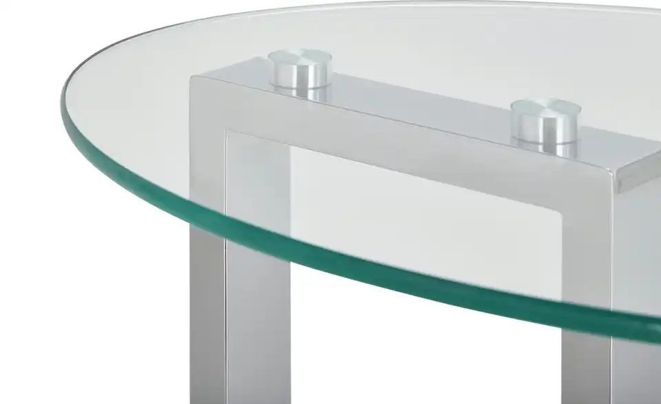 - Mehr zu MaterialTischplatte SicherheitsklarglasGestell Stahl verchromtBodenplatte SicherheitsklarglasGleiter Silikon