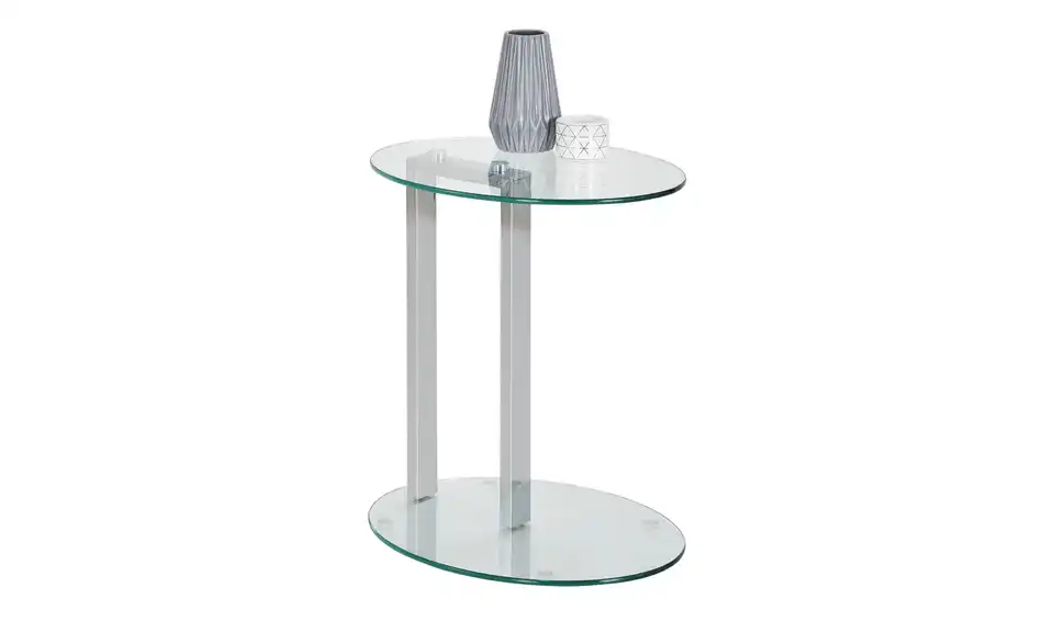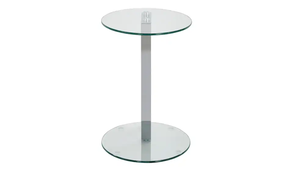 Hanau ist ein dekorativer kleiner Beistelltisch. Er macht im Wohnraum eine ebenso gute Figur wie in Flur oder Wintergarten. Im Schlafzimmer kann Hanau auch als Nachttischchen dienen. Tischplatte und Fuß sind aus Glas. Wobei für die Tischplatte ein Sicherheitsglas verwendet wurde. Es ist besonders robust. Staub und Flecken können Sie leicht wegwischen. Das Säulengestell ist aus verchromtem Stahl.Lieferung & Versand