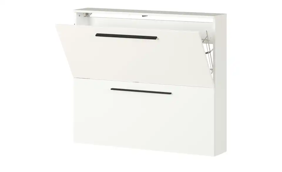 Dieser moderne, minimalistisch gehaltene Hängeschuhschrank bietet praktischen Stauraum. Mit seiner Tiefe von 19 Zentimetern passt er auch in schmale Flure und Eingangsbereiche. Da er hängend montiert wird, erhält er eine gewisse schwerelose Optik, die gut mit den einfarbigen Fronten harmoniert. Kontrastgriffe akzentuieren den Hängeschuhschrank und runden das Design gekonnt ab.Lieferung & Versand