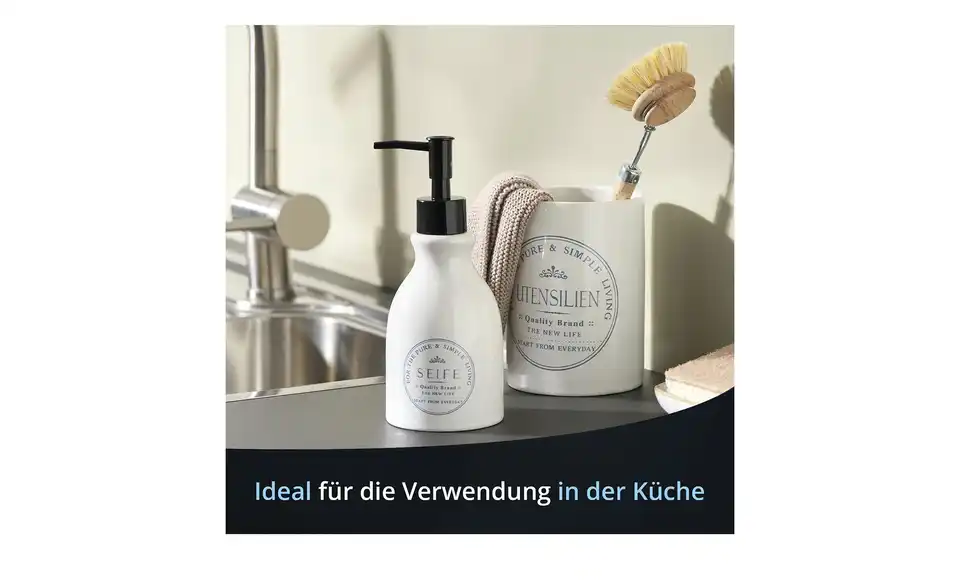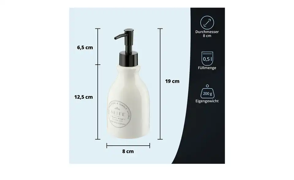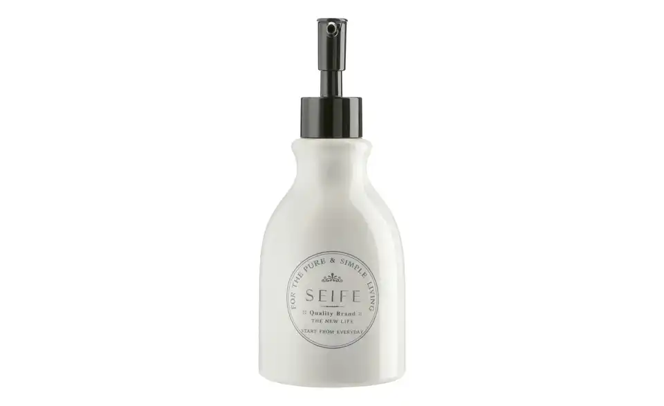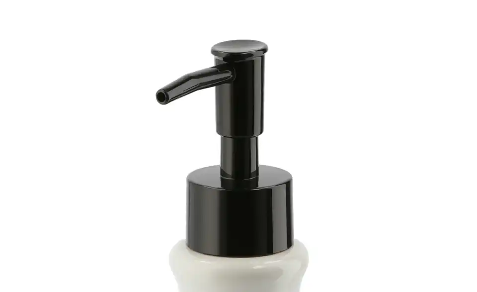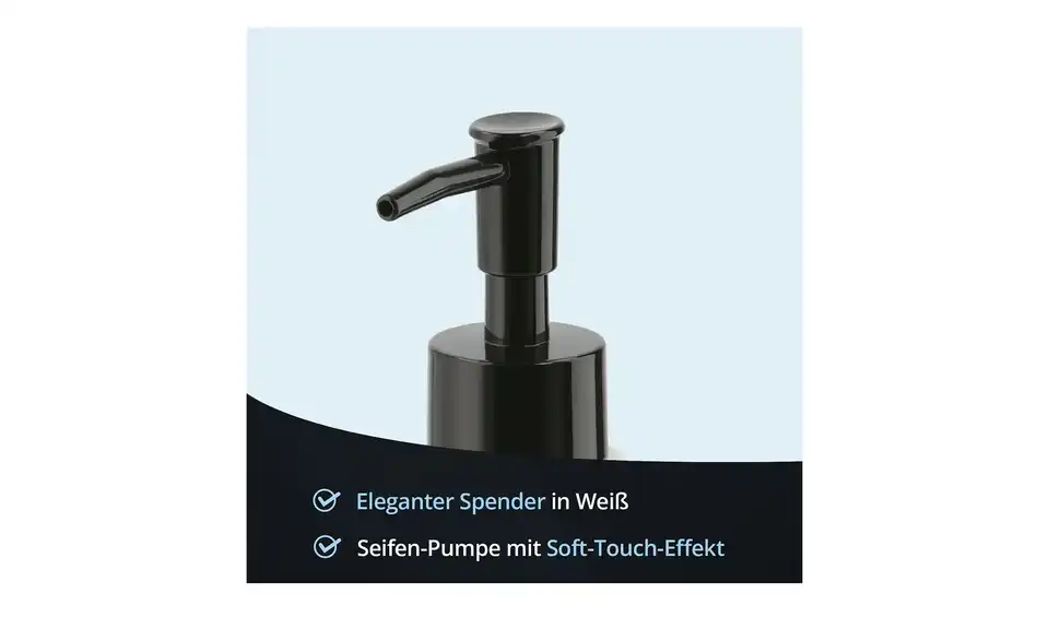 - Lieferumfang / mitgeliefertes Zubehörweißer Seifenspender mit schwarzem Pumper