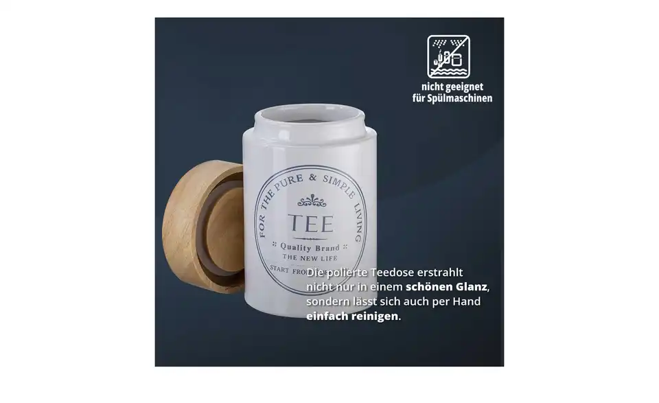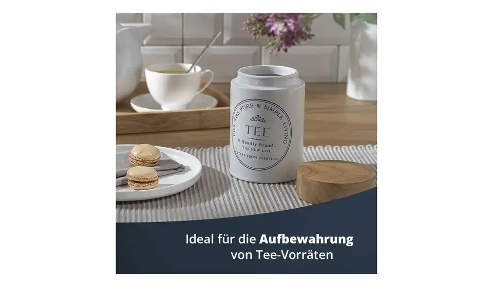 Diese praktische Aufbewahrungsdose mit Holzdeckel ist aus weißem Steinzeug gefertigt und eine dekorative Möglichkeit, Lebensmittel aufzubewahren.Lieferung & Versand
