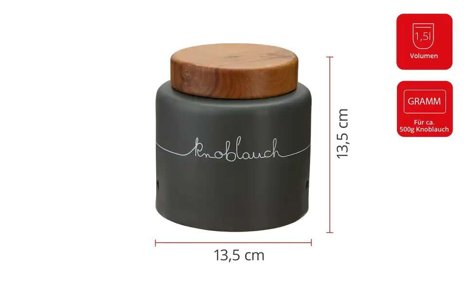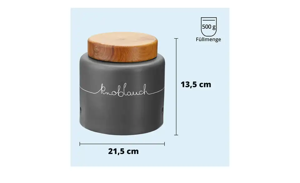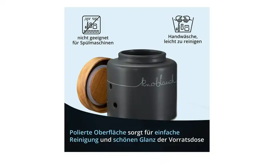 Diese Dose wurde extra zum Aufbewahren von Knoblauch hergestellt. Sie besteht aus hochwertigem Steinzeug. Lüftungslöcher sorgen für günstige Lagerbedingung der Lebensmittel. Ein hübscher Akazienholzdeckel verschließt und dekoriert die Dose.Lieferung & Versand