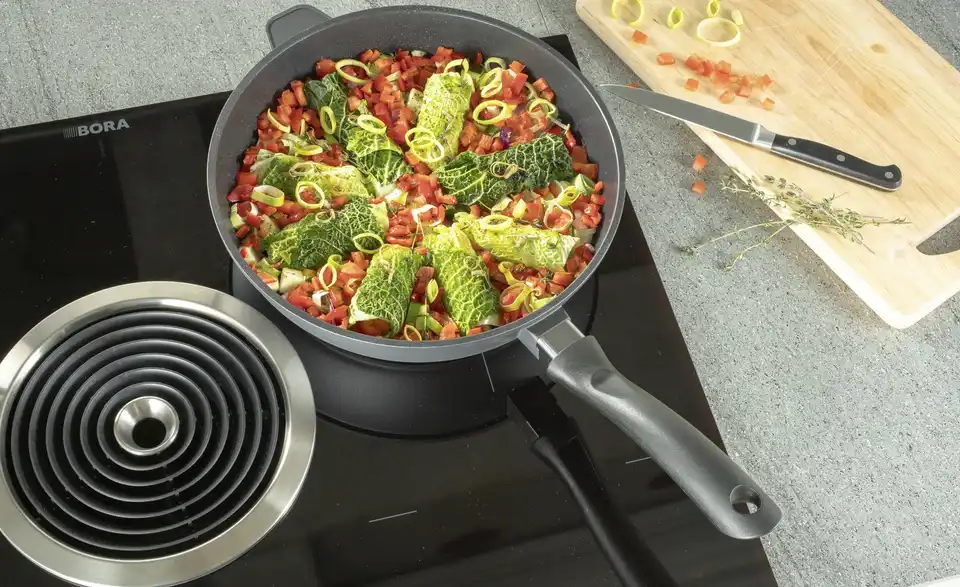 Schmorpfannen sind durch ihre hohe Wand ideal, um Gemüse oder Fleisch schonend zuzubereiten.Der im Preis enthaltene Deckel unterstützt die schonende Zubereitung aller Schmor- und Pfannengerichte.Lieferung & Versand