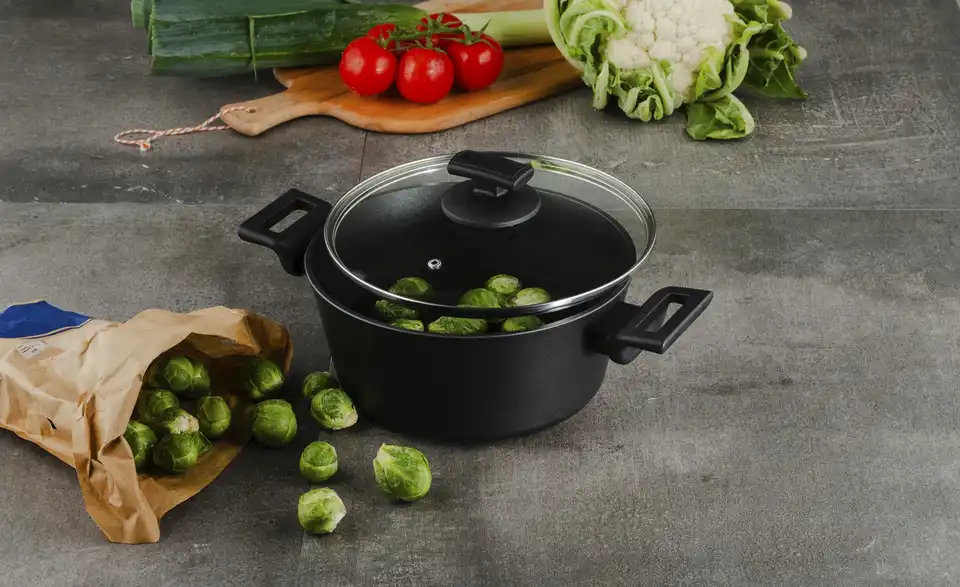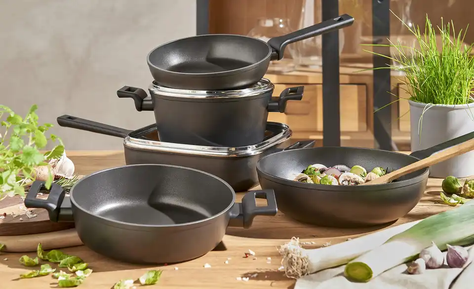 Nachhaltig kochen? Kein Problem mit unser Kochgeschirrserie Green Line. Der Körper wurde zu 100% aus recycelten Aluminium hergestellt. Als Antihaftbeschichtung dient die hochwertige ILAG MAXIMIZING GREEN©. natürlich frei von schädlichen Chemikalien. Die ergonomischen Designgriffe wurden aus natürlichen Rohstoffen hergestellt. Das Kochgeschirr ist für alle Herdarten geeignet, somit kann jeder umweltbewusster kochen. Zu guter Letzt besteht die Verpackung aus recyceltem Karton.Lieferung & Versand