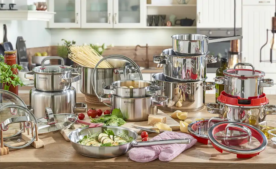 - Lieferumfang / mitgeliefertes Zubehör1x Bratentopf mit Deckel Ø 20 cm (V 2,5l)1x Fleischtopf mit Deckel Ø 16 cm (V 1,9l)1x Fleischtopf mit Deckel Ø 20 cm (V 3,9l)1x Fleischtopf mit Deckel Ø 24 cm (V 5,7l)1x Stielkasserolle ohne Deckel Ø 16 cm (V 1,4l)