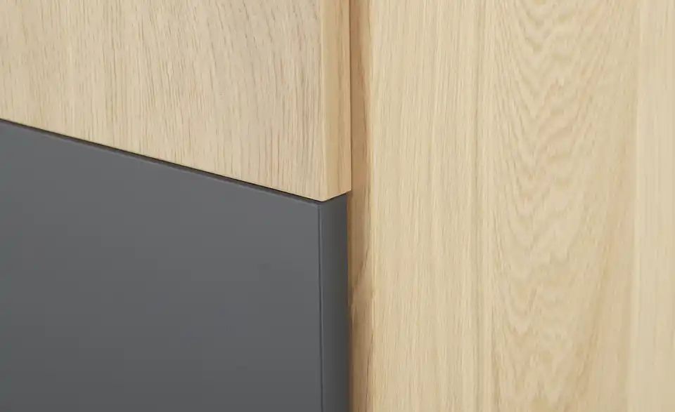 - Mehr zu AusführungBalkeneiche Echtholz furniertBauchbinde in Lack Basalt