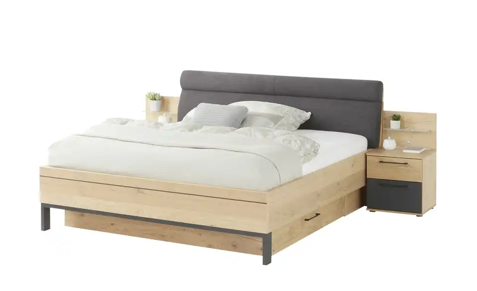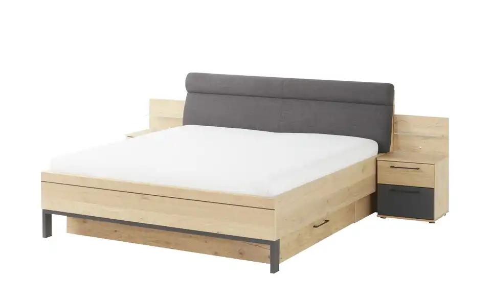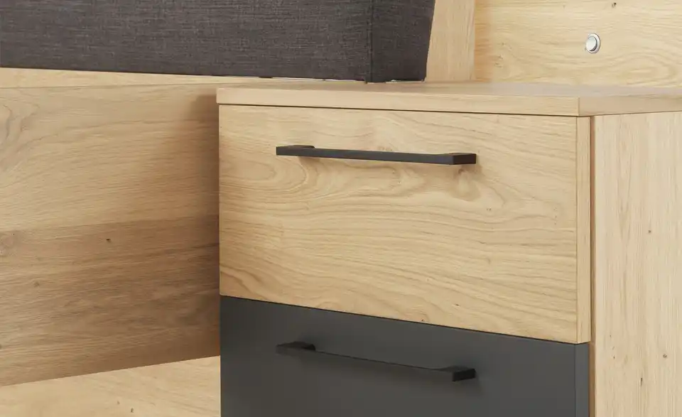 - Mehr zu Farbeunterer Schubkasten in Lack BasaltKopfteil Stoffbezug in Anthrazit