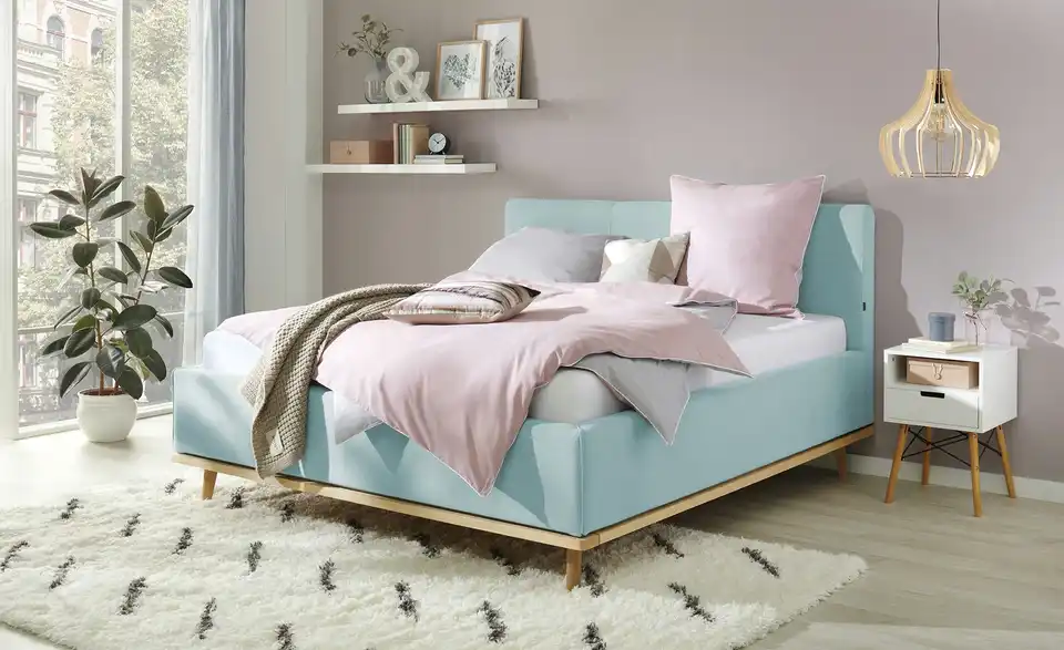 Helles, freundliches Eichenholz und ein weicher Bezug aus meliertem Webstoff: Das Polsterbett Delphi (Variante A) lässt das Herz von Scandi-Fans höherschlagen. Das skandinavisch angehauchte Bett der Marke Musterring punktet außerdem mit einem dezent abgesteppten Kopfteil. Zwei verstellbare, seitlich aufklappbare Lattenroste sind beim Polsterbett Delphi Variante A) mit dabei. Durch sie sind die beiden Bettkästen und deren Stauraum problemlos erreichbar. Sie haben noch keine Matratzen? Kein Problem: Die passenden Matratzen in Ihrem favorisierten Härtegrad können Sie ganz einfach mit auswählen.Lieferung & Versand