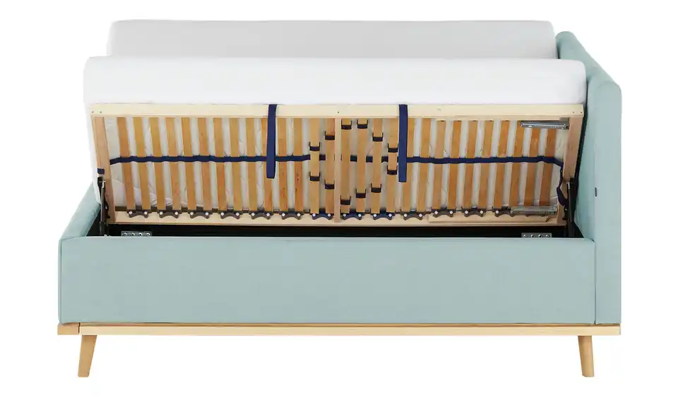 - Ausstattung / FunktionBettkastenöffnung linksBettkastenöffnung rechtsinnen liegender Bettkastenmit Gasdruckfedermanuelle Kopfteilverstellung