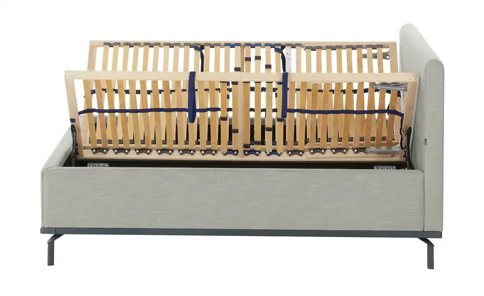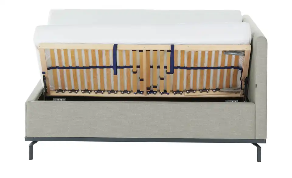 - Mehr zu Ausstattung / Funktion7 Liegezonen250 Federn je 100x200 cmMatratzenbezug abnehmbarMatratzenbezug teilbar & einzeln waschbarBettkasten mit Gasdruckfedern seitlich zu öffnenBettkastenbelüftung durch Löcher in der BodenplatteFederholzrahmen (Buche) mit 28 Leisten mit 5-facher Härtegradverstellungmit Mittelgurt und 5-facher Kopfteil-RasterverstellungKopfteilrücken mit Bezugsstoff bezogendadurch ist das Bett frei im Raum platzierbar