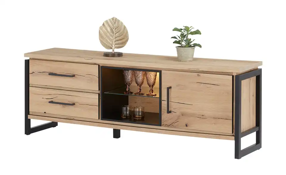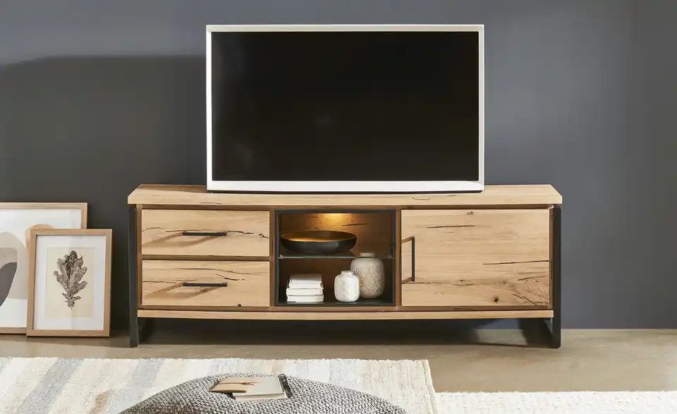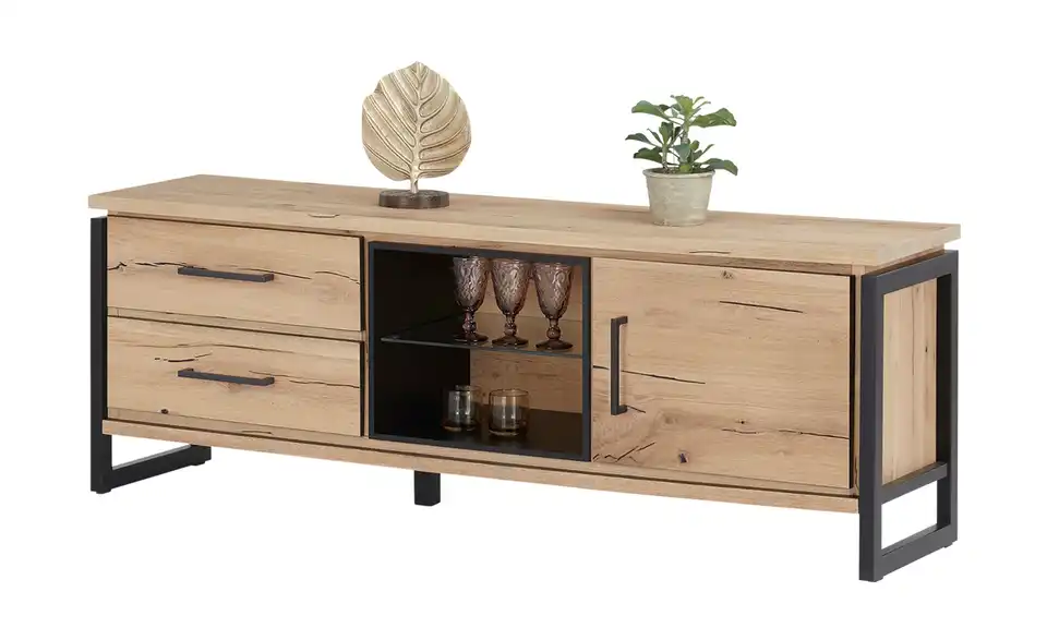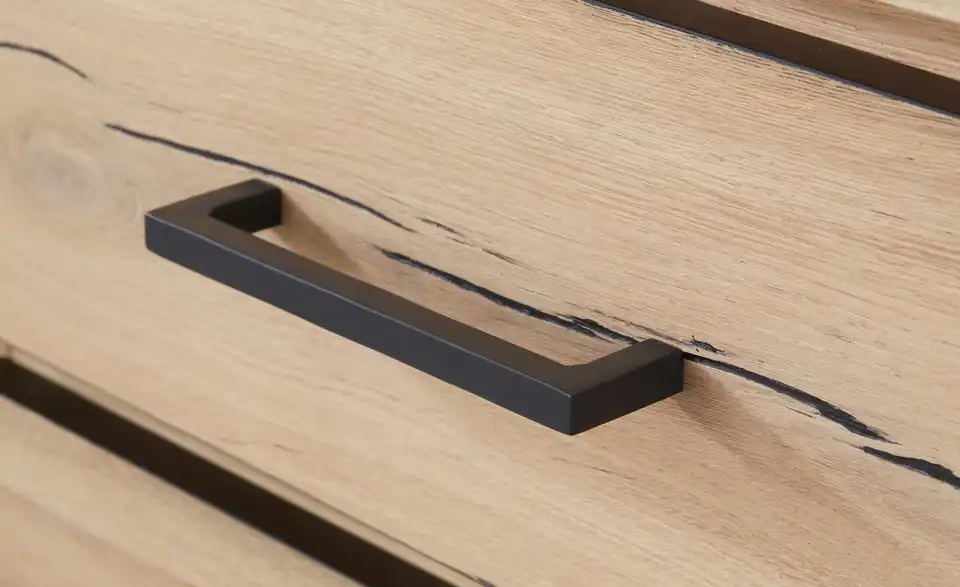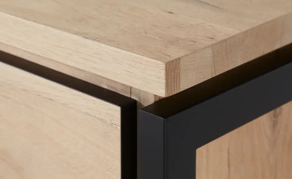 - Mehr zu MaterialStollen aus Massivholz Schwarz lackiertKorpus und Front aus Eiche furniert in Vintage Smoked oak