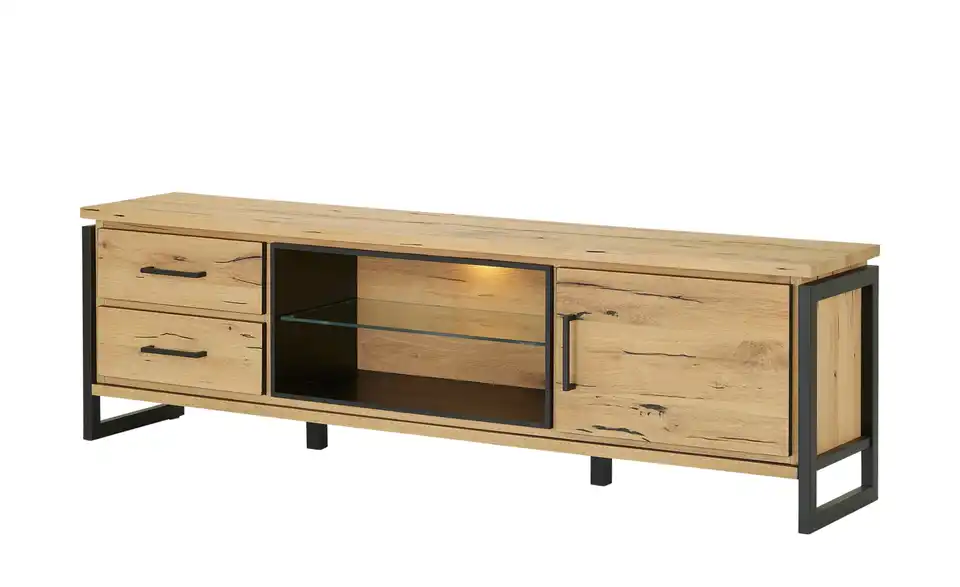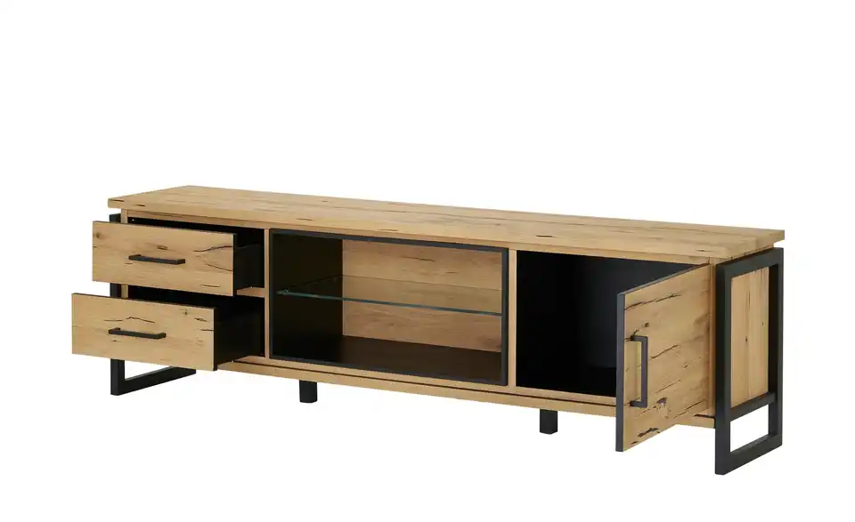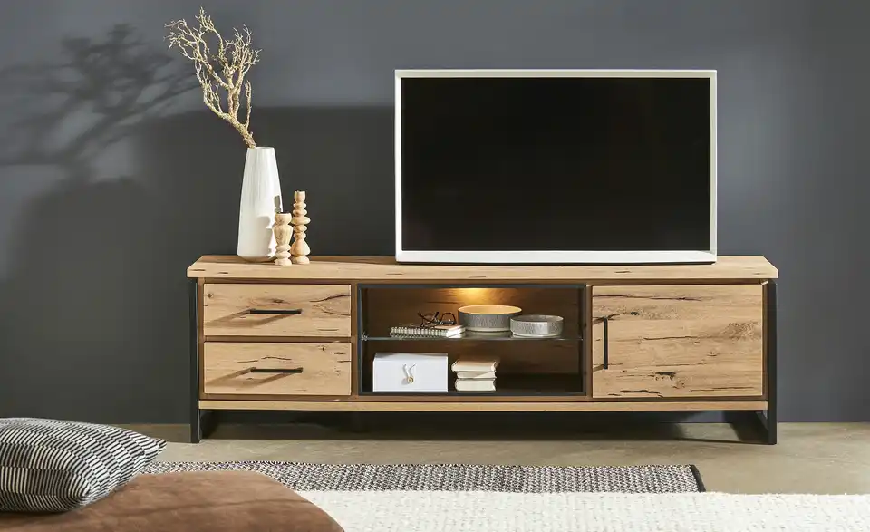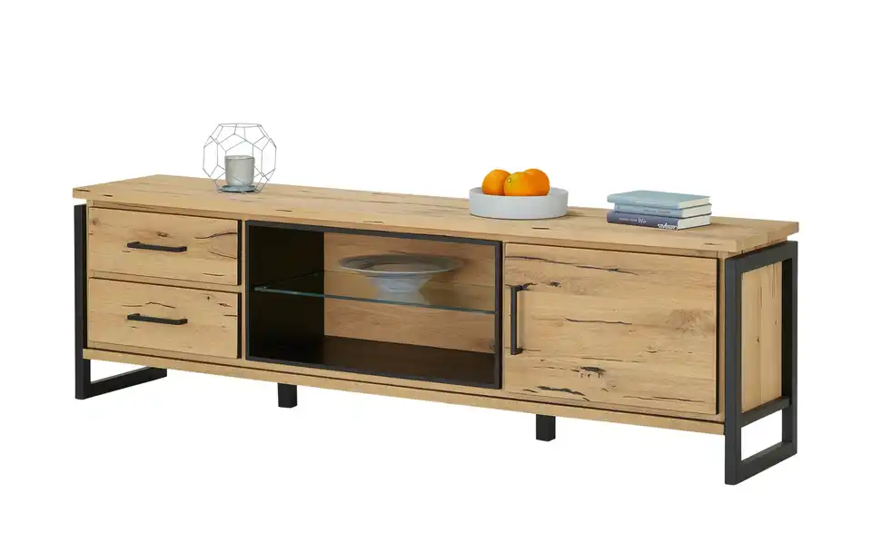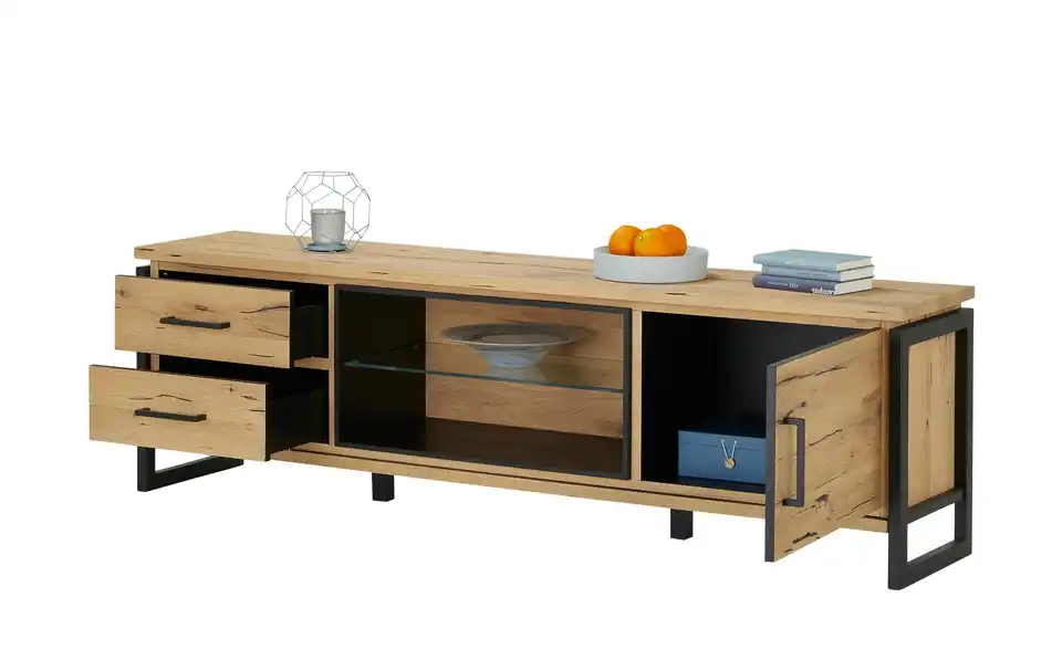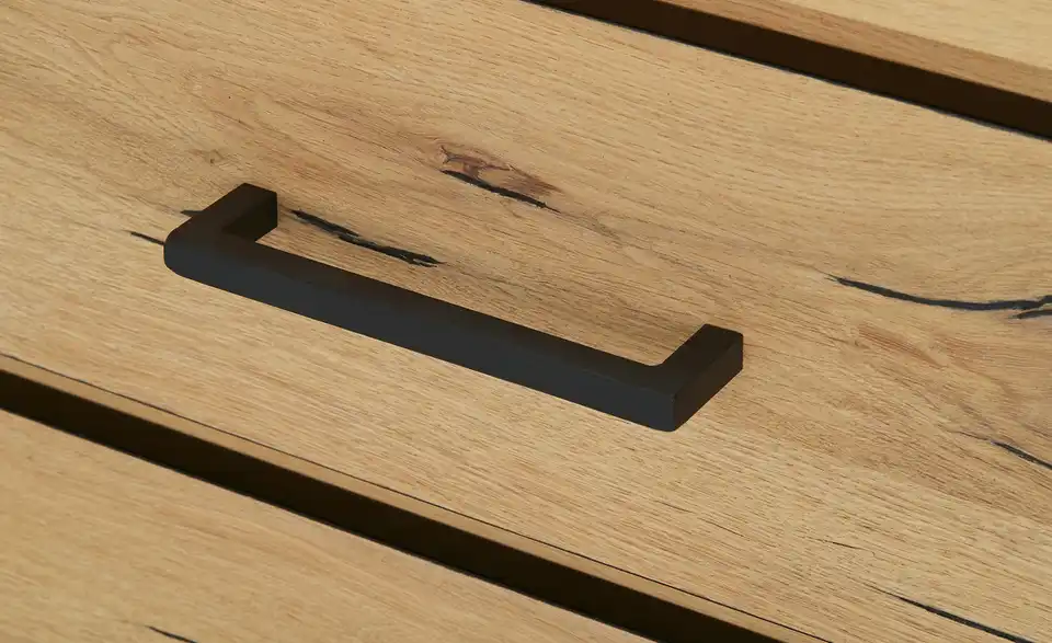 - Mehr zu MaterialStollen aus Massivholz Schwarz lackiertKorpus und Front aus Eiche furniert in Vintage Smoked oak