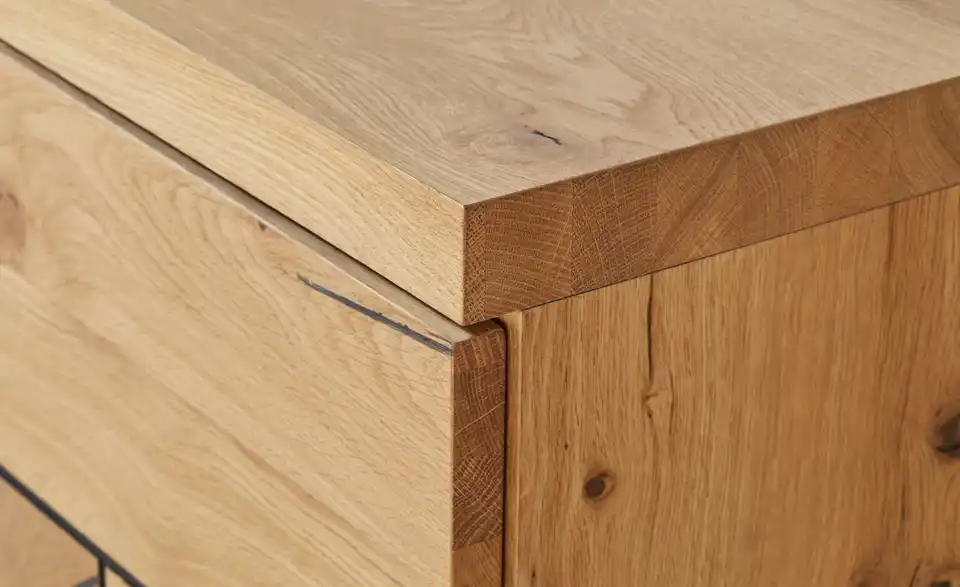 - Mehr zu MaterialKorpus und Front aus Holzwerkstoff furniert in Wildeiche geölt