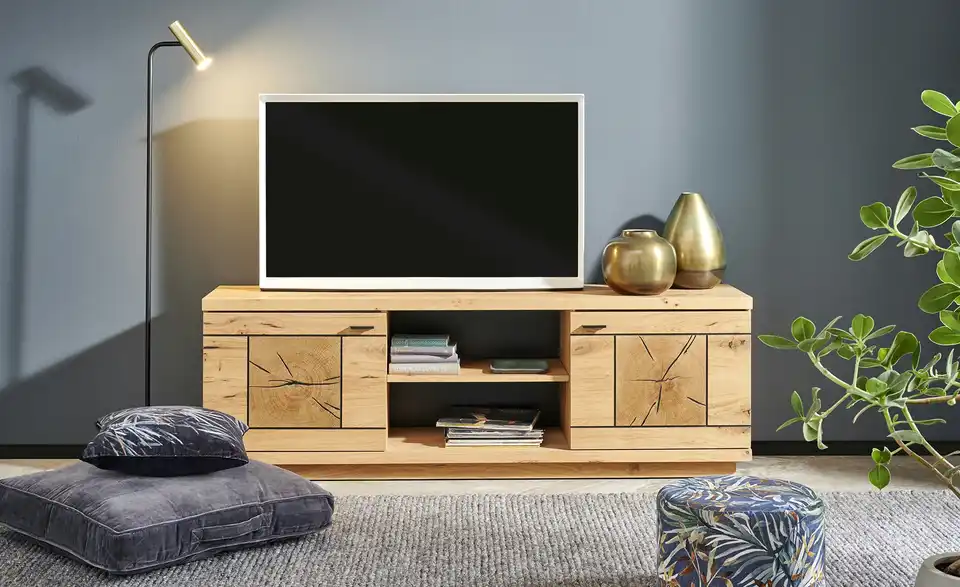 - Mehr zu MaterialKorpus und Front aus Holzwerkstoff furniert in Wildeiche geölt