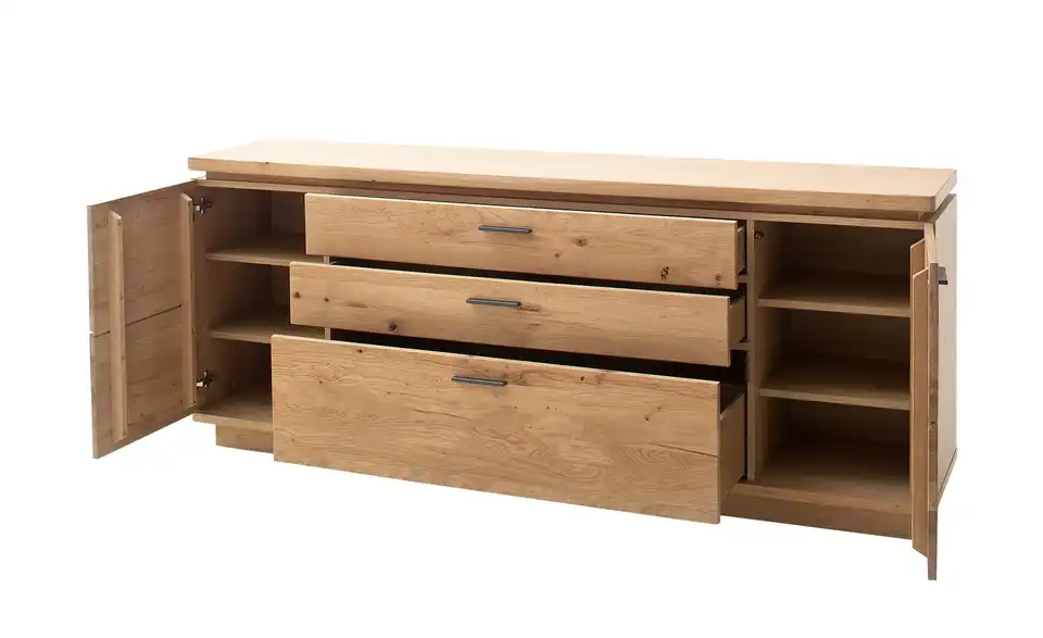 - Mehr zu MaterialFront aus Massivholz in Balkeneiche Bianco geöltKorpus aus Holzwerkstoff furniert in Eiche Bianco geölt / innen Eiche Bianco (Nachbildung)