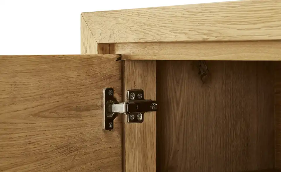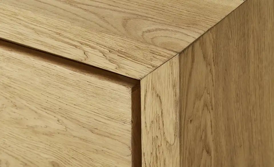 - Mehr zu MaterialKorpus und Front aus Tischlerplatte furniert in Eiche lackiertTischlerplatte Vollholz-Platte mit zwei Schichten aus Eichenfurnier und einer mittleren Schicht aus Kiefer-Massivholz-Leisten