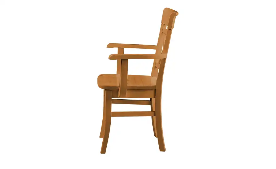 Dieser Esszimmerstuhl bringt ein behagliches Flair in jedes Interieur. Sämtliche Qualitäten und Besonderheiten, die die Marke maison bleue ausmachen, kommen im Stuhl zusammen. Das Modell Florian verfügt über gemütliche Armstützen, die den Sitzkomfort erhöhen und die individuelle Wohlfühlposition sichern, und kann auch optisch durch seinen ländlichen Stil überzeugen. Die Basis der Sitzmöglichkeit bildet ein Rahmen, welcher aus braunem Massivholz besteht. Das Gesamtstellmaß beläuft sich auf 61 x 94 x 43 cm. Dieser Stuhl schafft auch in Ihrem Zuhause eine wohnliche Atmosphäre.Lieferung & Versand