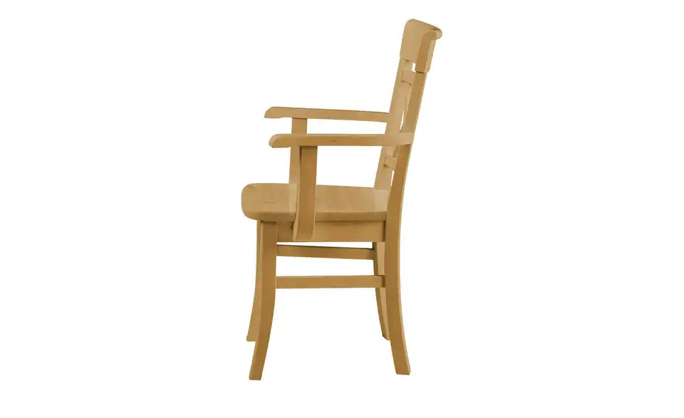 Dieser Esszimmerstuhl wird Ihre Innenausstattung bereichern. Der Stuhl der Marke maison bleue besitzt gemütliche Armstützen, die den Komfort erhöhen und die individuelle Wohlfühlposition sichern. Das Modell Florian kann auch optisch durch sein ländliches Design punkten. Bei dem Material des Gestelles handelt es sich um hellbraunes Massivholz. Das Gesamtstellmaß des Stuhls beträgt 61 x 94 x 43 cm. Hier nimmt jeder immer wieder gerne Platz.Lieferung & Versand