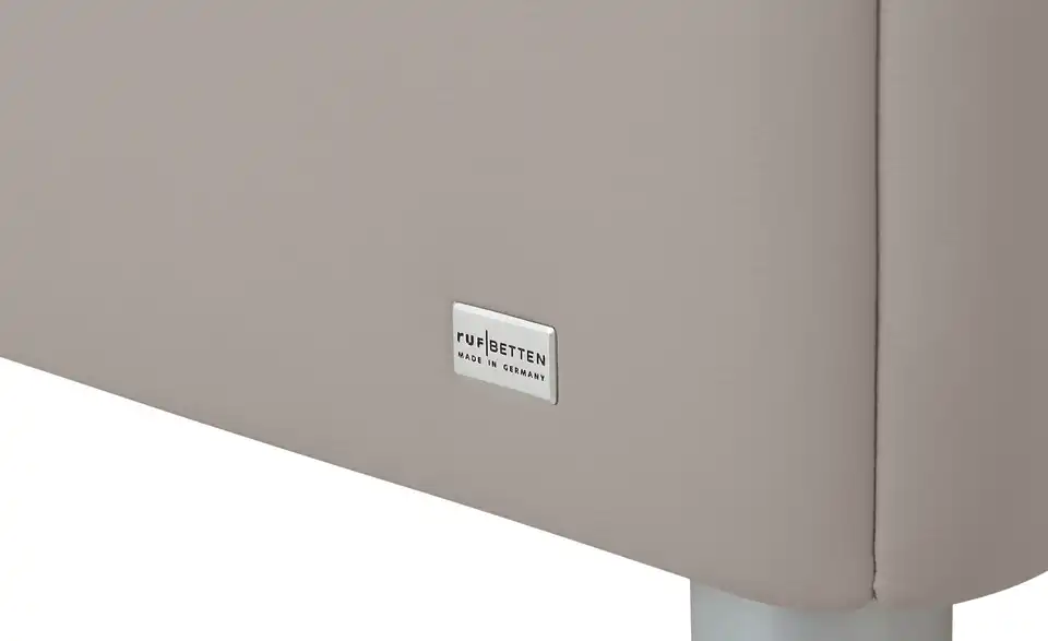RUF-Betten stehen für höchsten Komfort bei stilprägendem Design: Und das schon seit 1926. Durch einzigartige Design-Konzepte verspricht jedes RUF-Möbel unvergleichlichen Komfort der keine Wünsche offenlässt. Geradliniges Design, liebevolle Akzente und moderne Highlights: Das Polsterbett Casa verbindet attraktive Designelemente mit Komforteigenschaften in RUF-Markenqualität. Das moderne Bett ist mit einem zeitlosen Kunstlederbezug versehen der sich modern und unaufdringlich zeigt. Das Kopfteil wurde mittig abgesteppt und bringt das authentische Lederimitat gekonnt zur Geltung. Zylinderförmige Metallfüße greifen den modernen Look auf und setzen attraktive Highlights. Komfortabel wird es durch die inkludierten Matratzen. Die zwei 7-Zonen-Matratzen unterstützen jeden Körperbereich optimal und entlasten die Wirbelsäule im Schlaf. In den Tonnentaschenfederkernmatratzen befinden sich hochwertige Mikrofedern, sodass einer noch erholsameren Nacht nichts mehr im Wege steht. Das Polsterbett Casa kommt selbstverständlich mit den passenden Lattenrahmen zu Ihnen. Diese sind dank einer Gasdruckfeder mühelos verstellbar und am Kopf- sowie Fußende hochklappbar. So kommen Sie an die beiden praktischen Bettkästen. Entdecken Sie zeitgemäßes Design und Komfort der Traditionsmarke RUF.bewusst wohnen