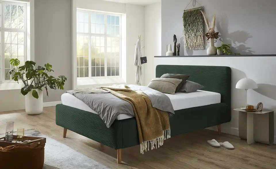 Skandinavisches Design ist bekannt für seine natürliche, schlichte Eleganz und Gemütlichkeit. Das Polsterbettgestell Mattis greift den Skandi-Look gekonnt auf. Die dunklen Massivholzfüße sorgen für eine attraktive Retronote. Bettgestell und Kopfteil sind weich gepolstert und bezogen. Der pflegeleichte Bezug ist dezent meliert und harmoniert auch mit bereits vorhandenen Schlafzimmermöbeln. Sie können das Polsterbettgestell Mattis mit Matratzen und Lattenrosten nach Wahl ergänzen. Diese sind in verschiedenen Größen und Abmessungen separat im Onlineshop erhältlich.Lieferung & Versand