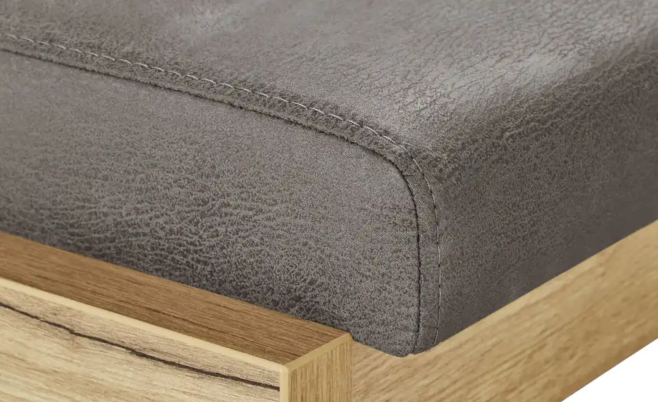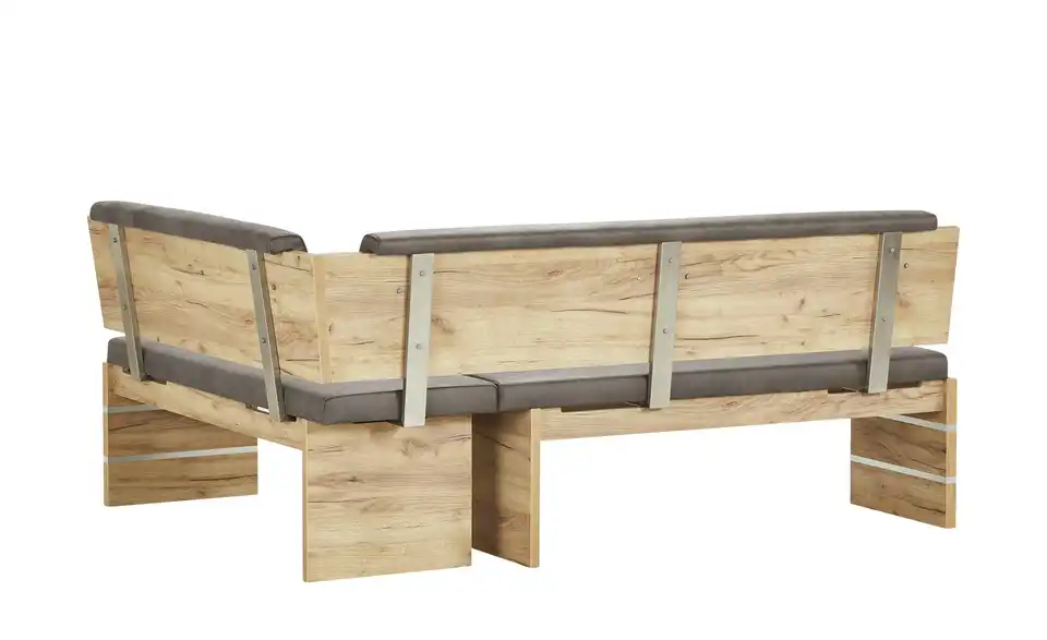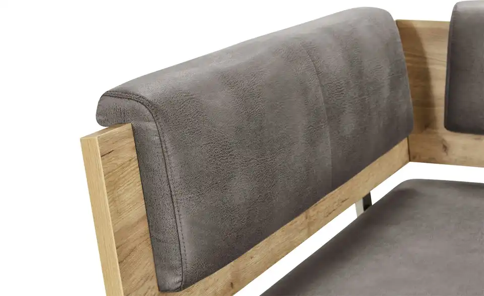 Eckbänke nutzen Ecken praktisch aus und bieten eine große Sitzfläche. Deshalb empfehlen wir die Eckbank Mira von uno. Sie ist L-förmig designt und verfügt so über Sitzplätze für mehrere Personen. Sitz- und Rückenfläche werden mit dicken Polstern ergänzt, damit Sie es bequem haben. Ihr Bezug besteht aus einer weichen Mikrofaser. Ein schöner Kontrast zum Gestell, das in Struktureiche Terra (Nachbildung) designt ist. Die Gestellwangen werden mit Metall-Applikationen akzentuiert.Lieferung & Versand